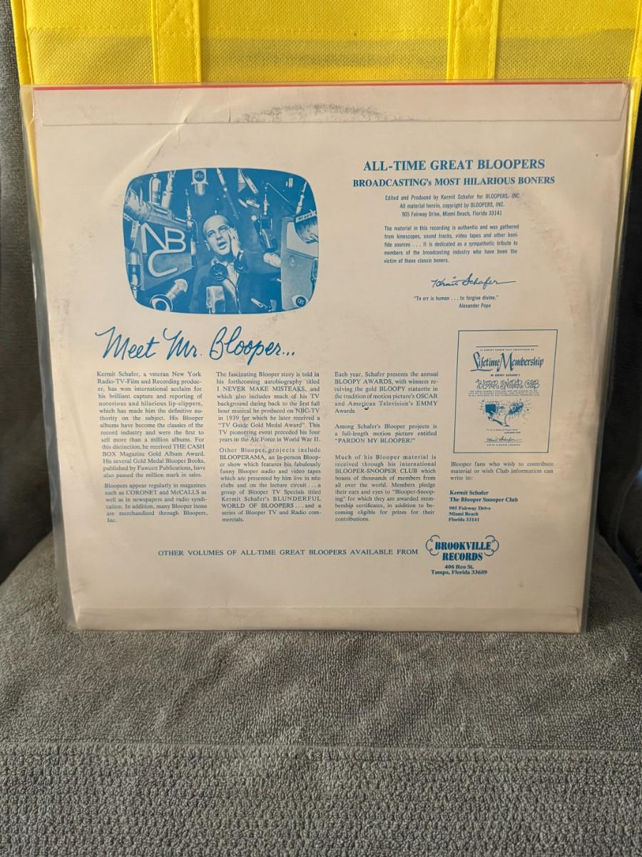 Artist/Collector: The album features a collection of "bloopers" (humorous mistakes or errors) from radio and television, compiled and presented by Kermit Schafer, a well-known radio and TV producer.