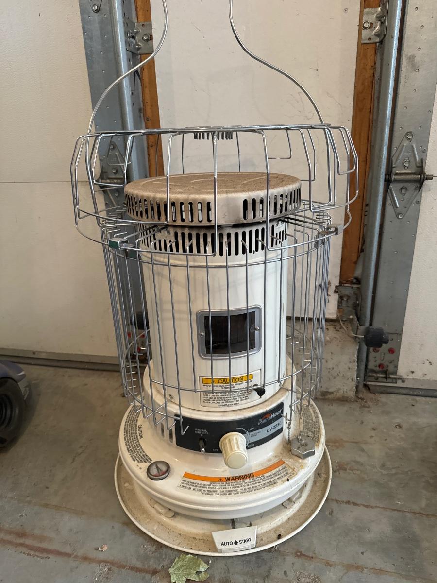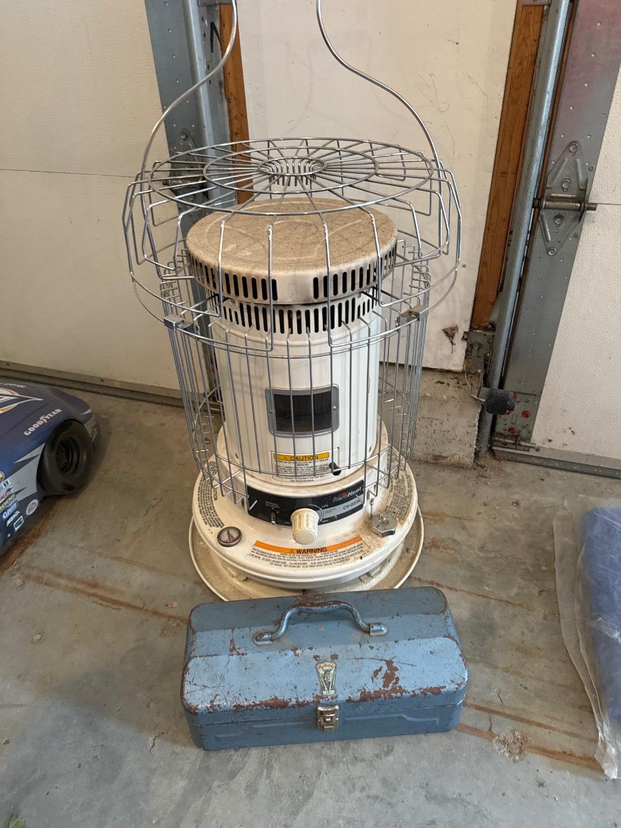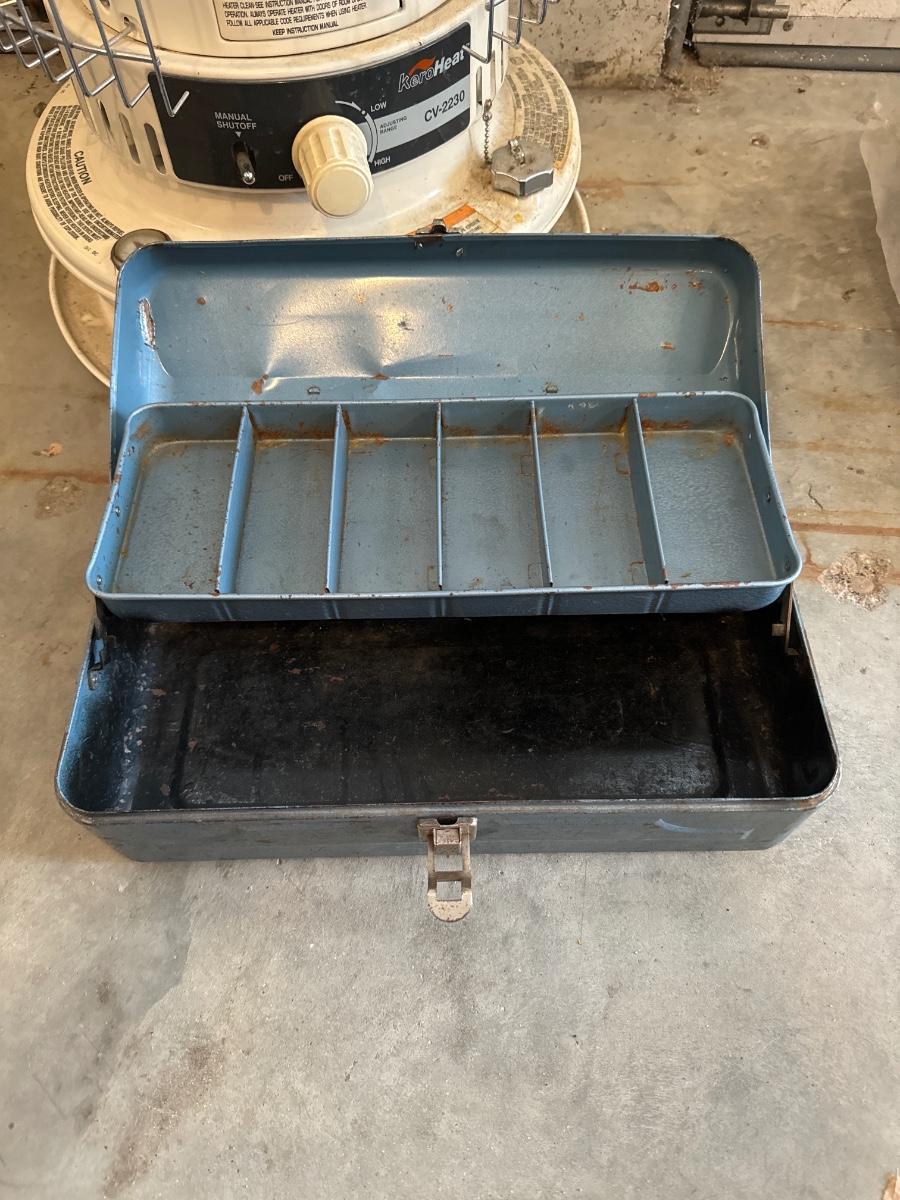 Kerosene heater and And Vintage My Buddy Metal tackle box