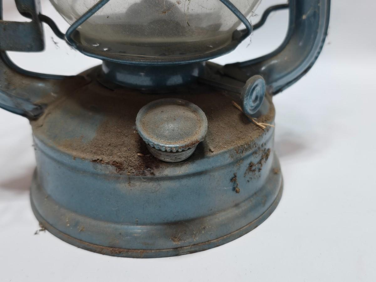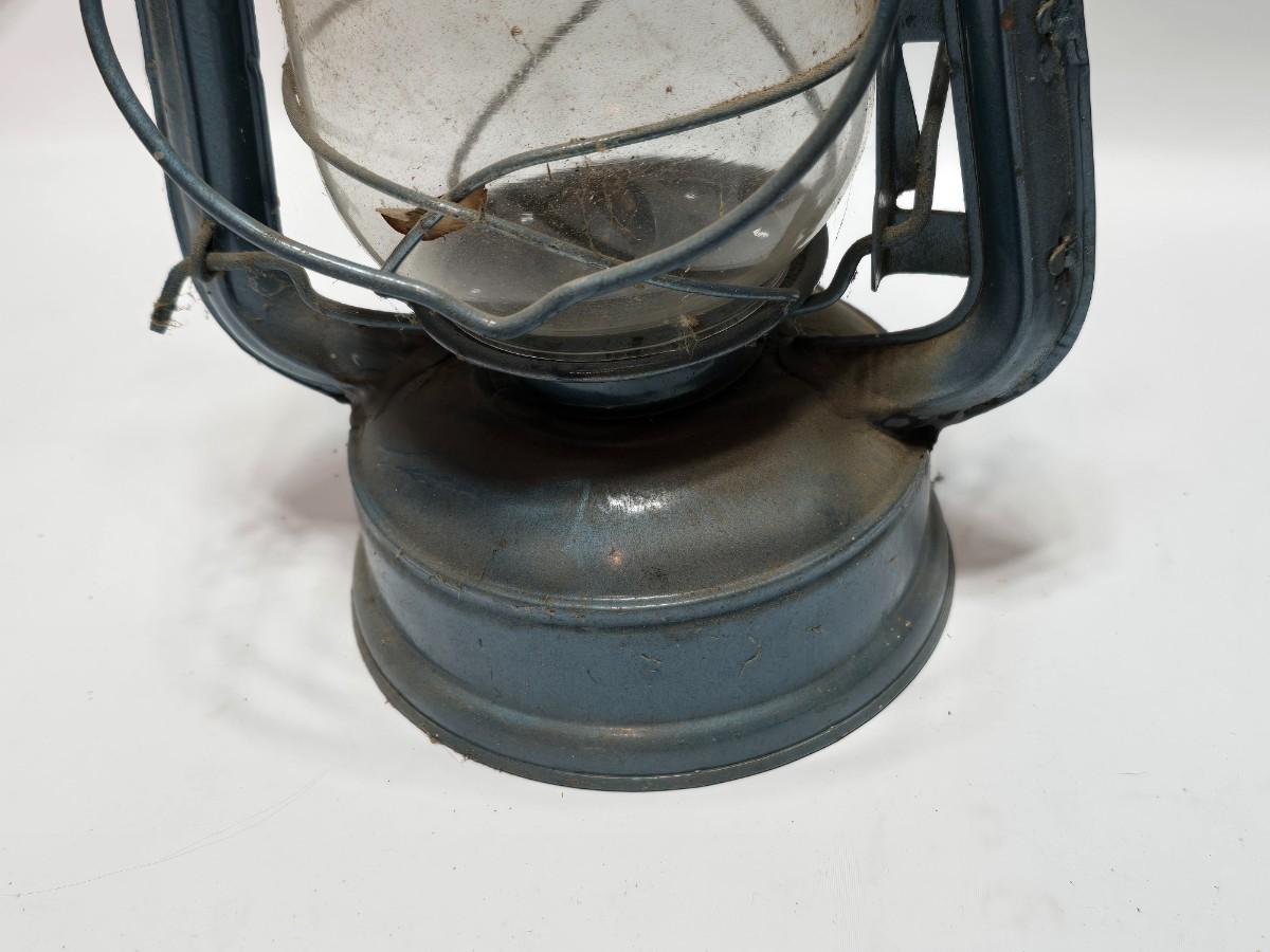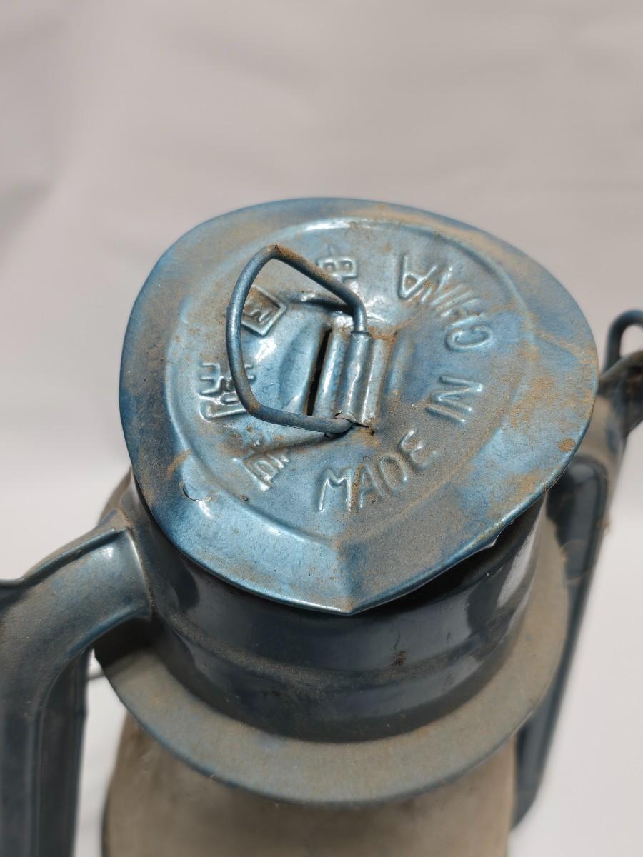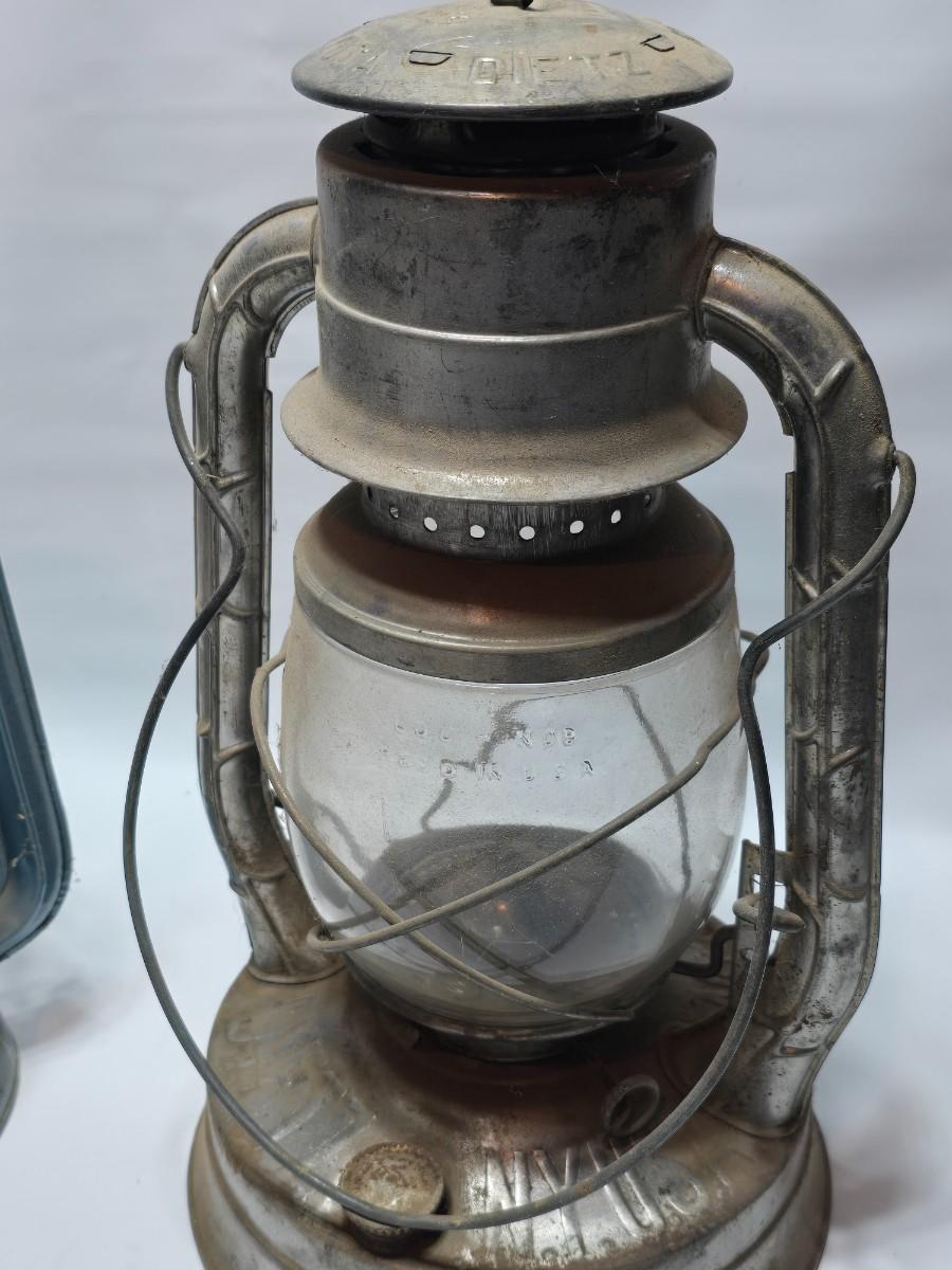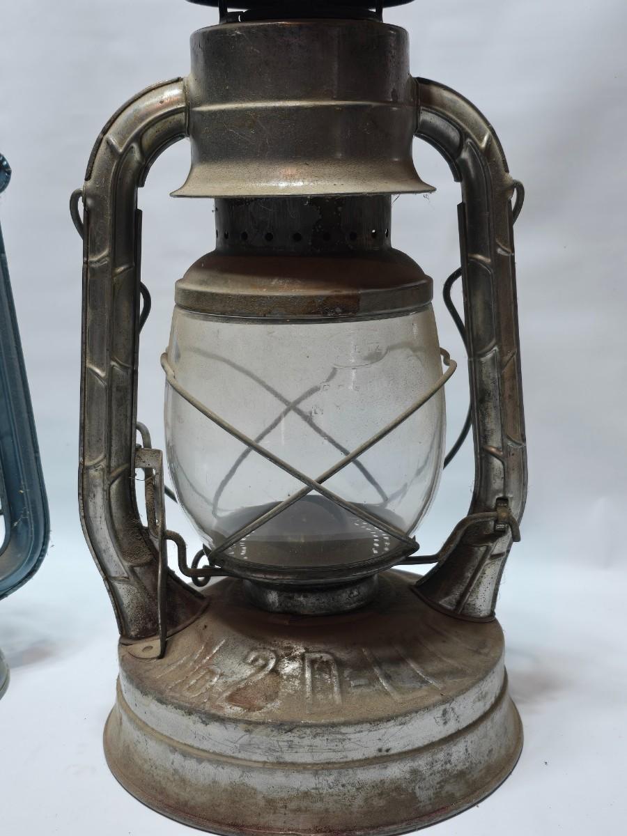 Kerosene Lanterns - Dietz USA New York No 2 - damaged bent top Made in China Blue with glass globes
