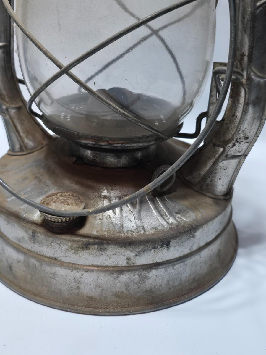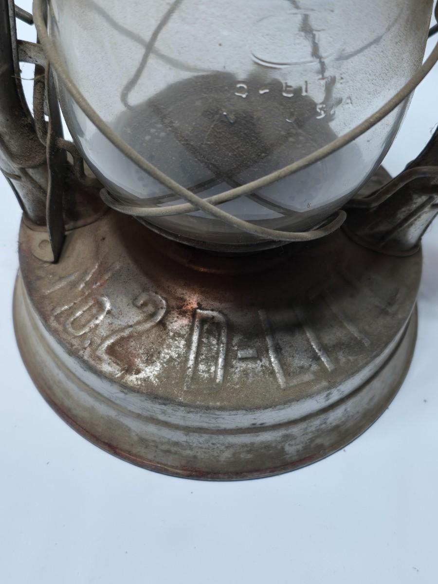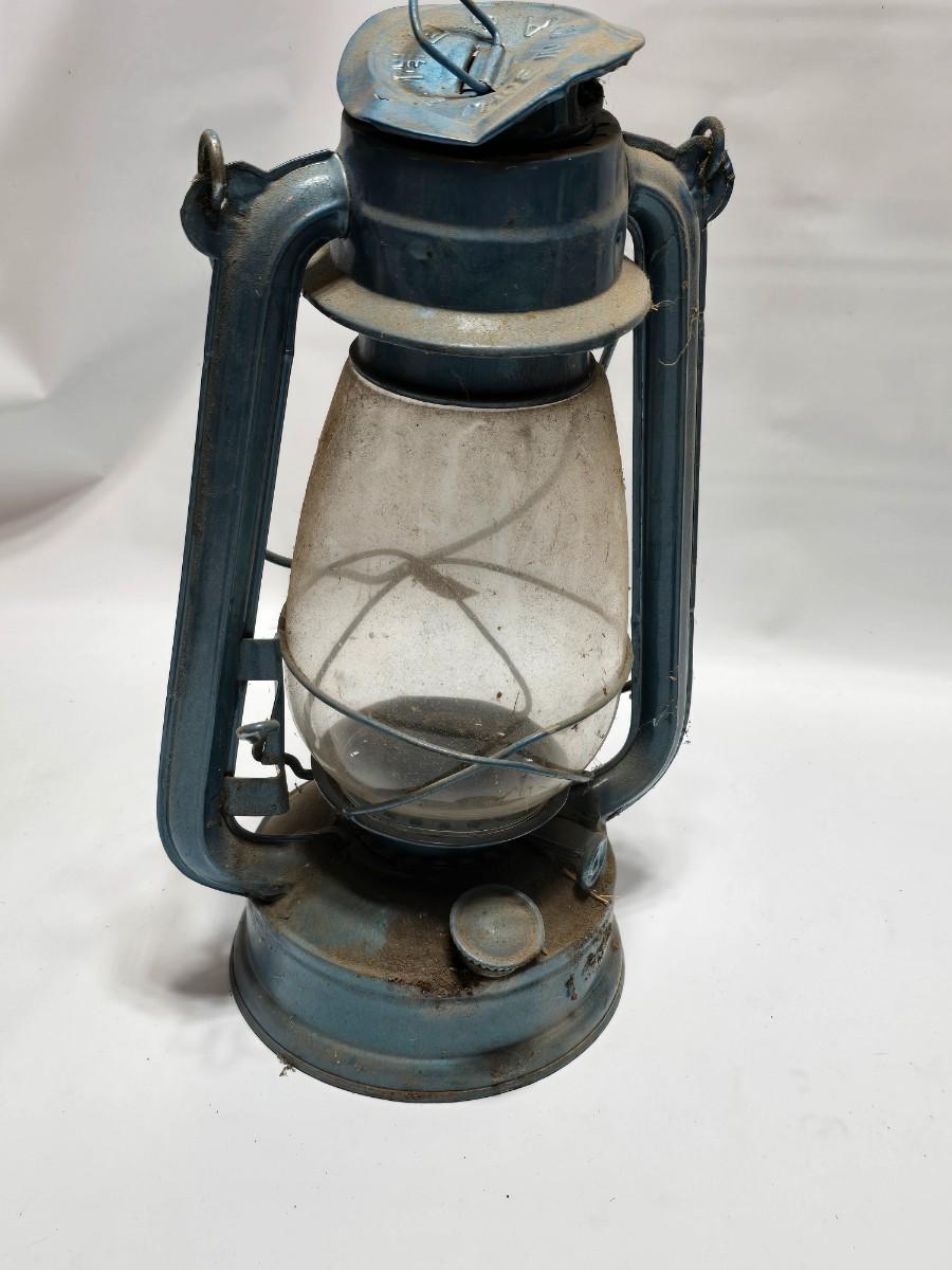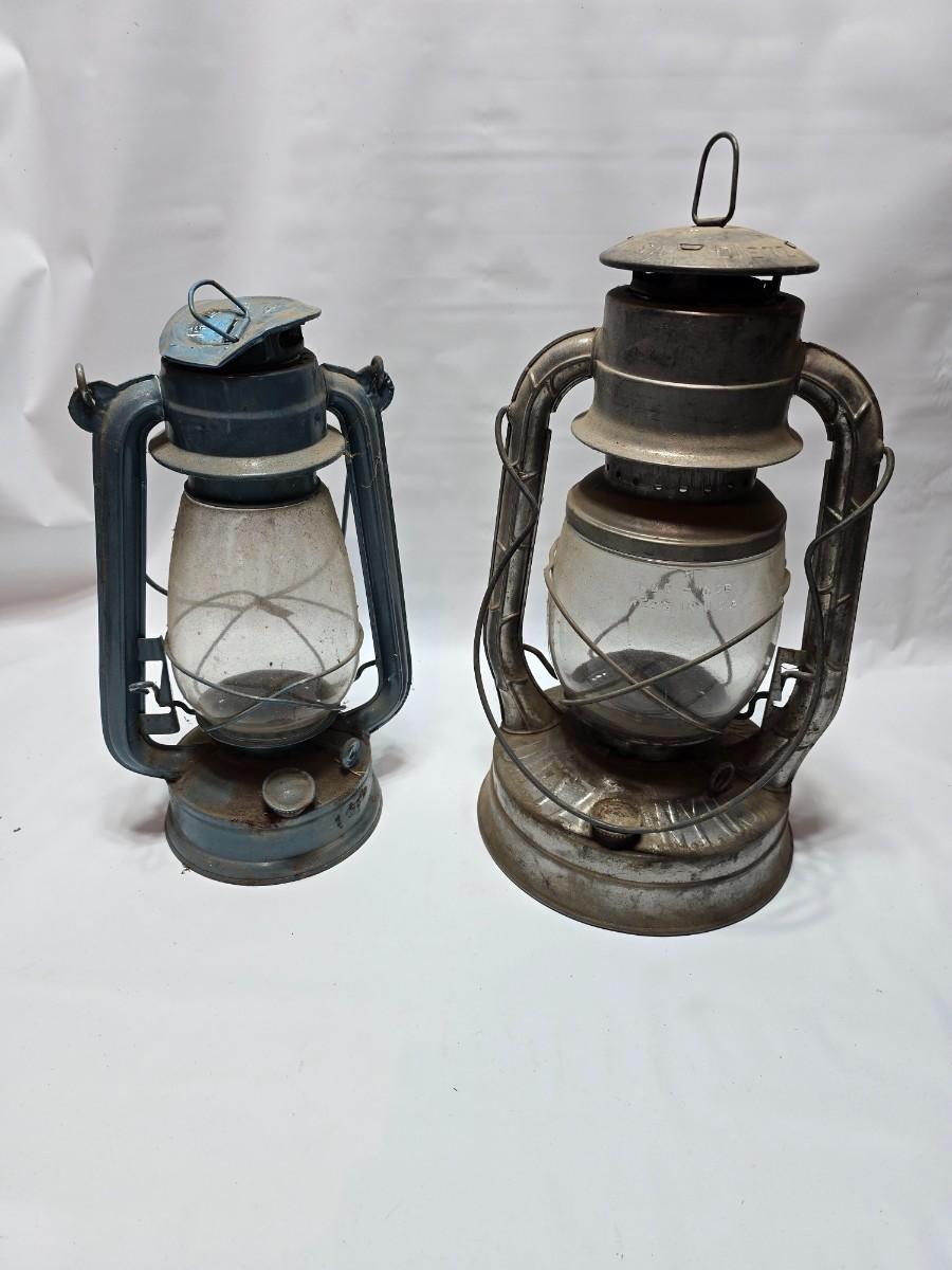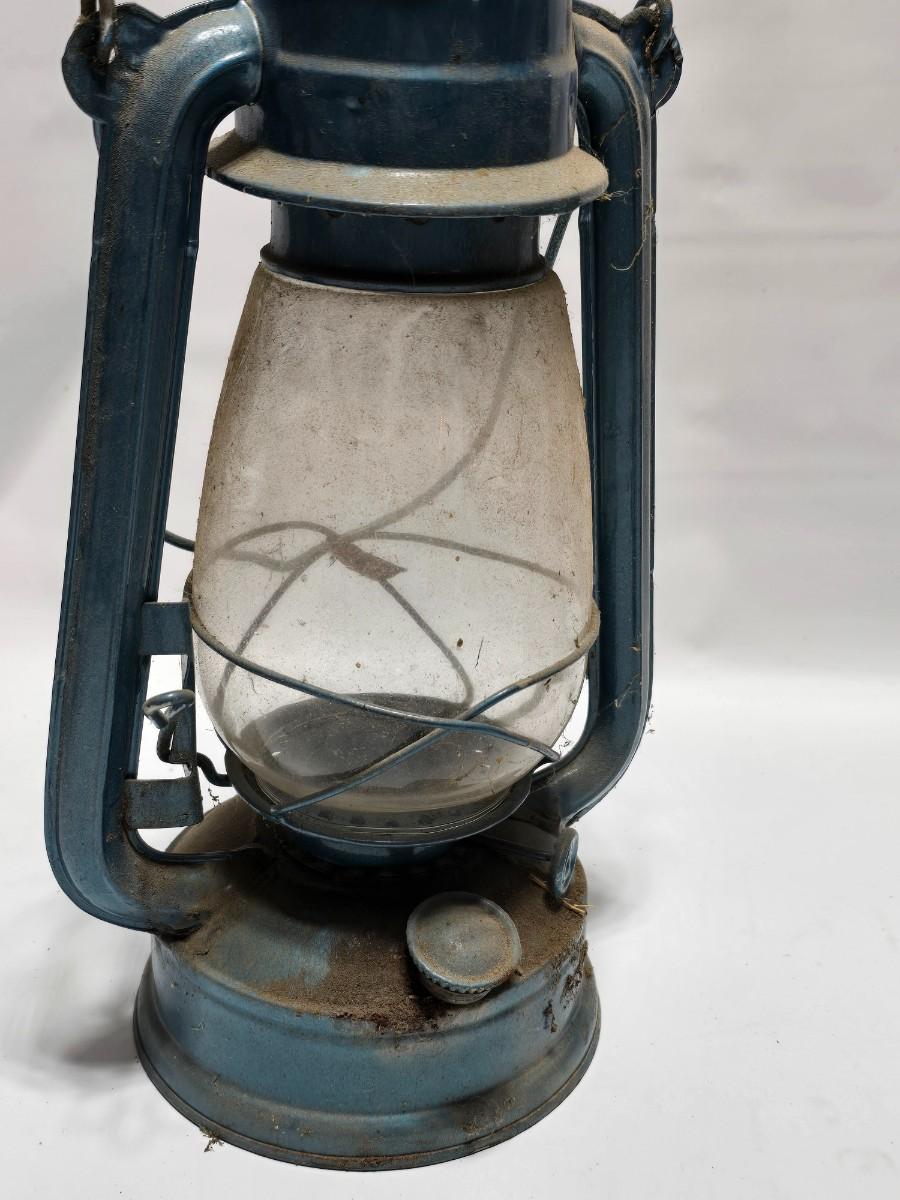 Kerosene Lanterns - Dietz USA New York No 2 - damaged bent top Made in China Blue with glass globes