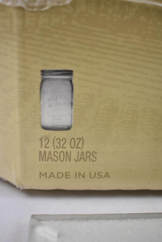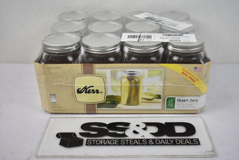 Kerr Glass Mason Jar With Lid & Band, Wide Mouth, 32 Ounces, 12 Count - New