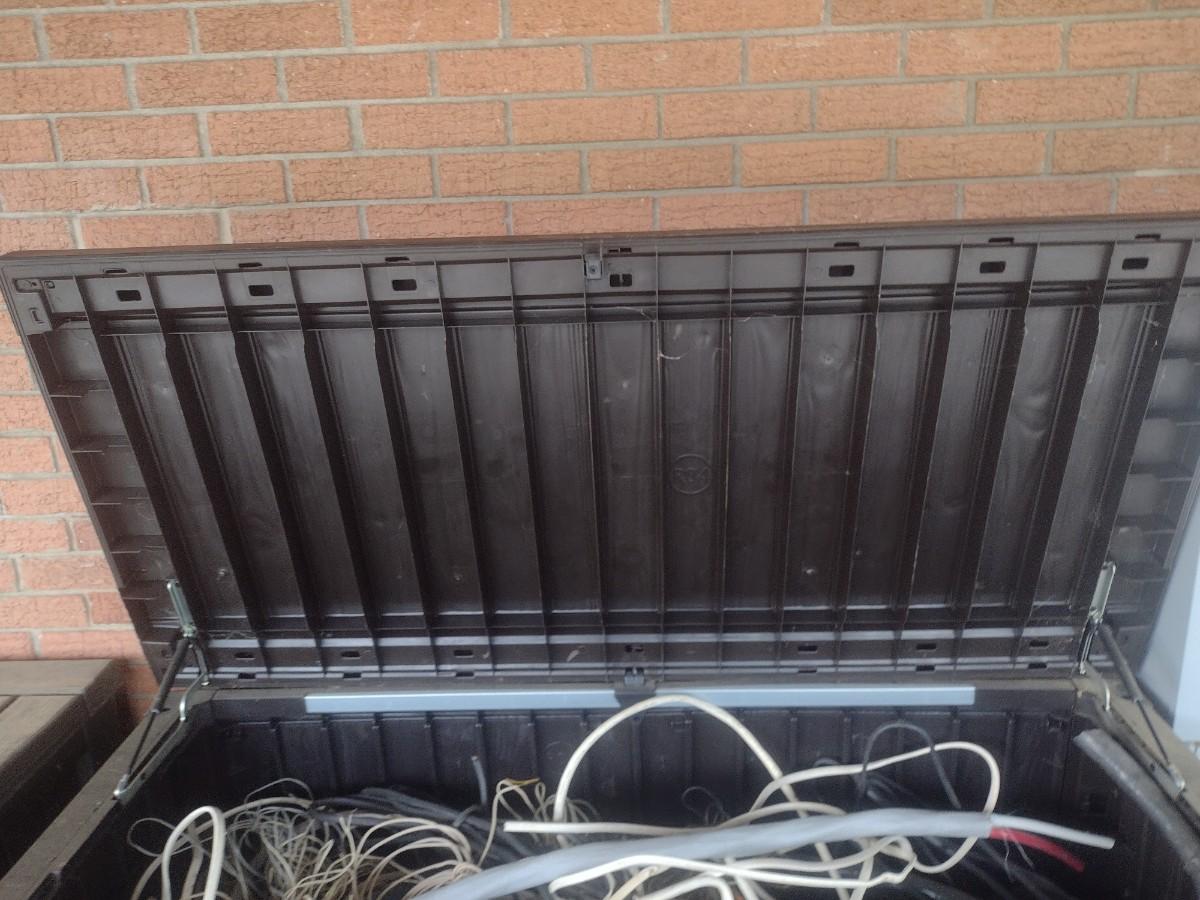 Keter Brand Composite Faux Wood Slat Porch Box Choice A (No Contents)