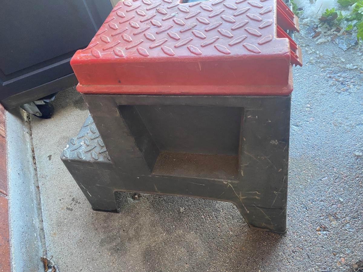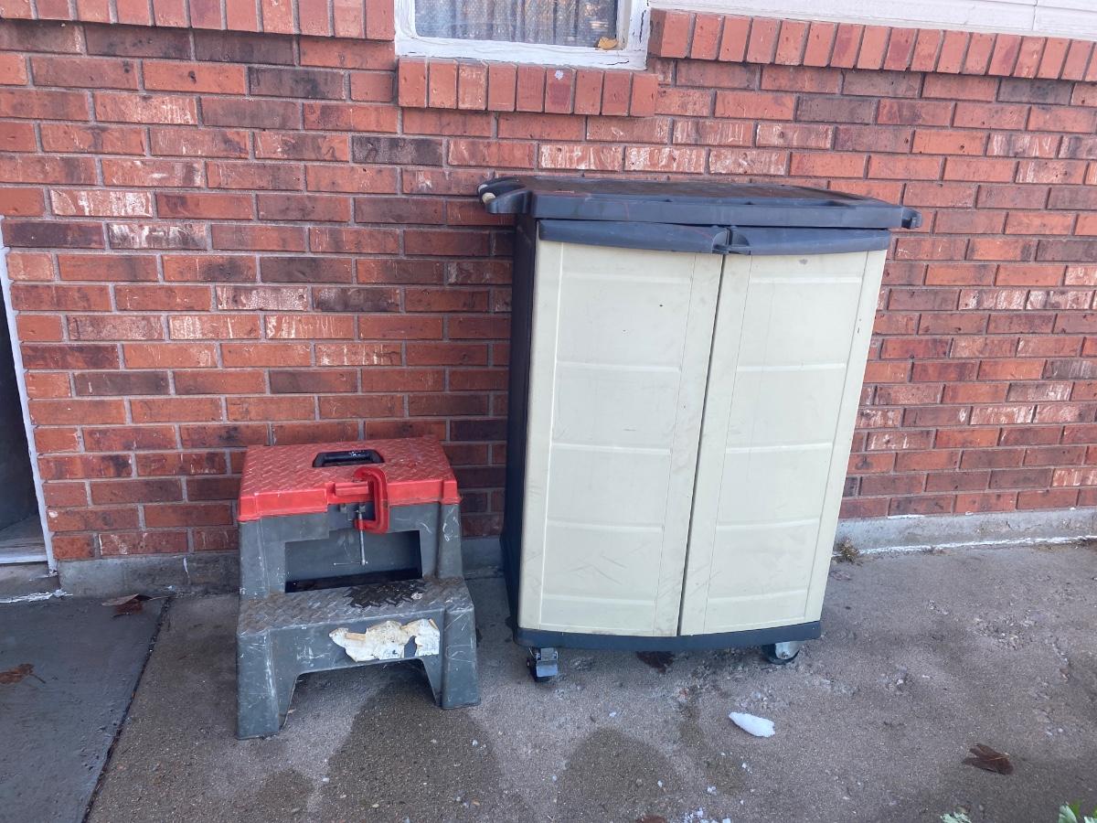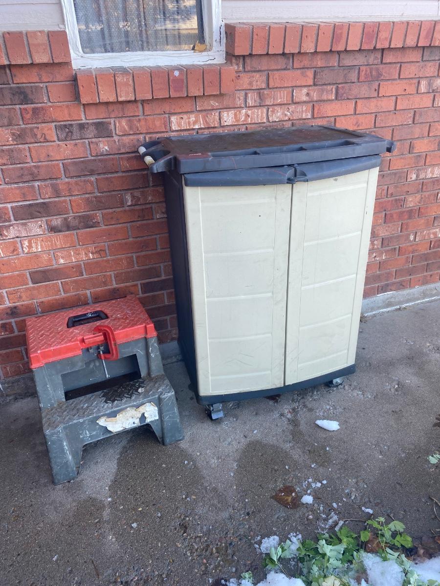 KETER GARAGE STORAGE CABINET AND STEP STOOL/TOOL BOX