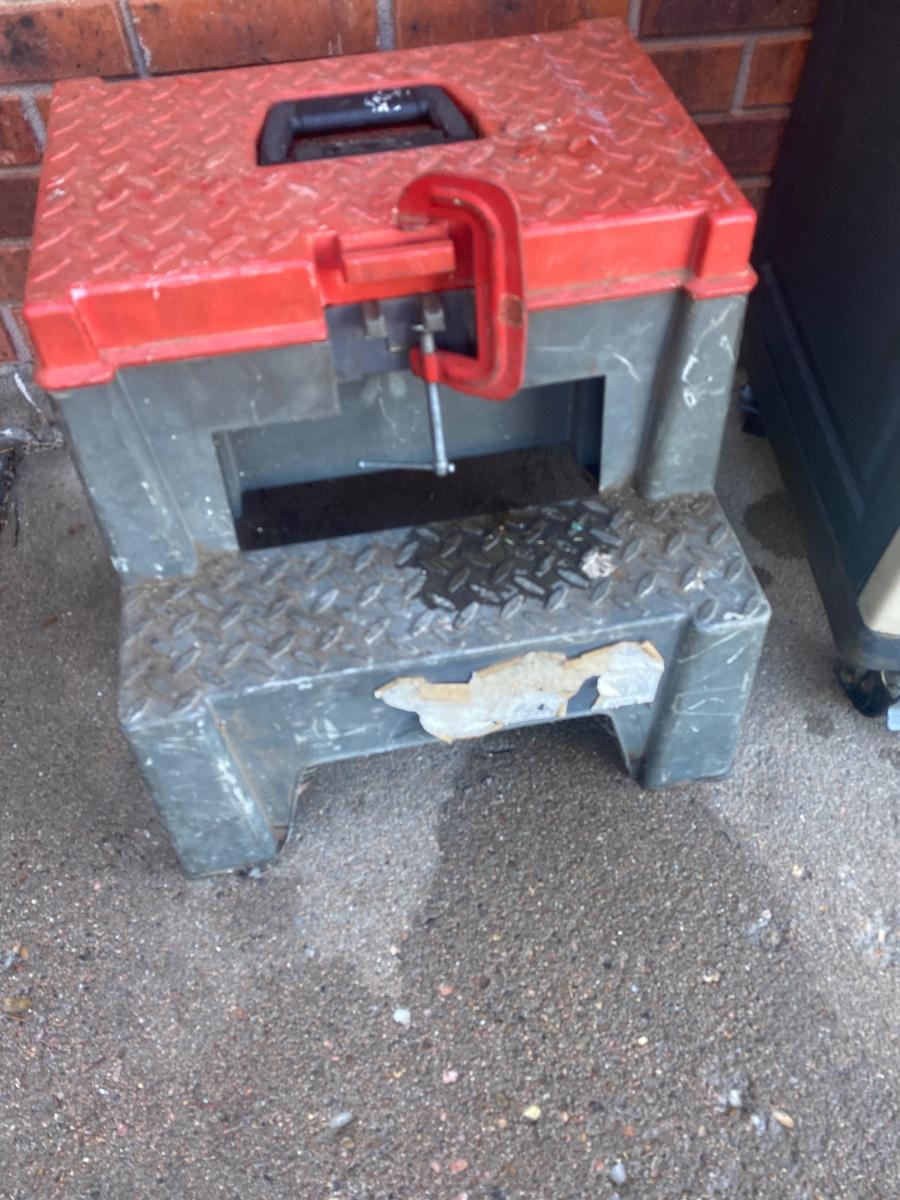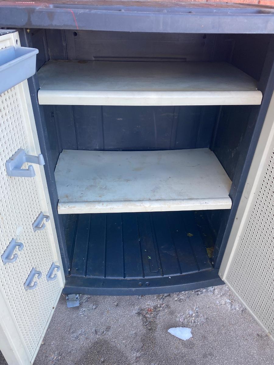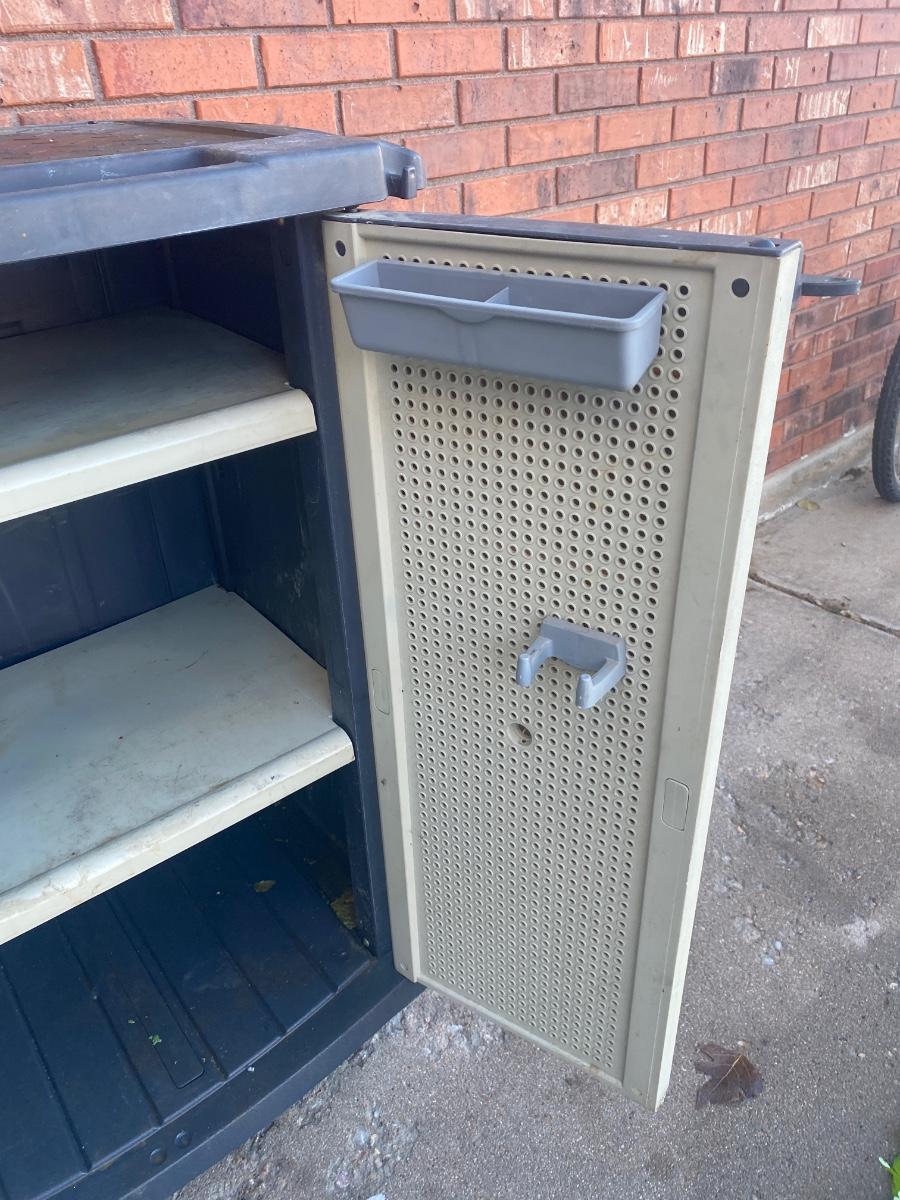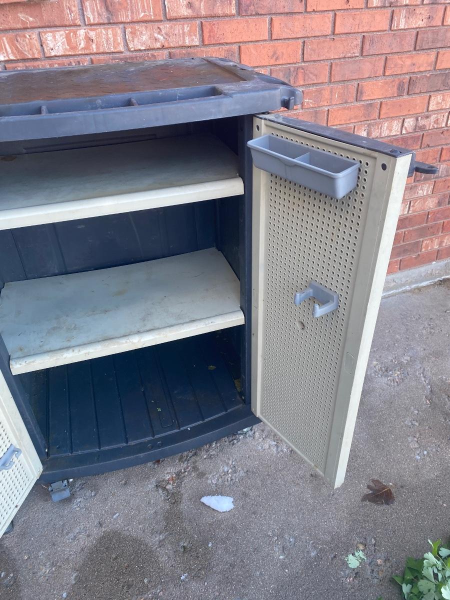 KETER GARAGE STORAGE CABINET AND STEP STOOL/TOOL BOX