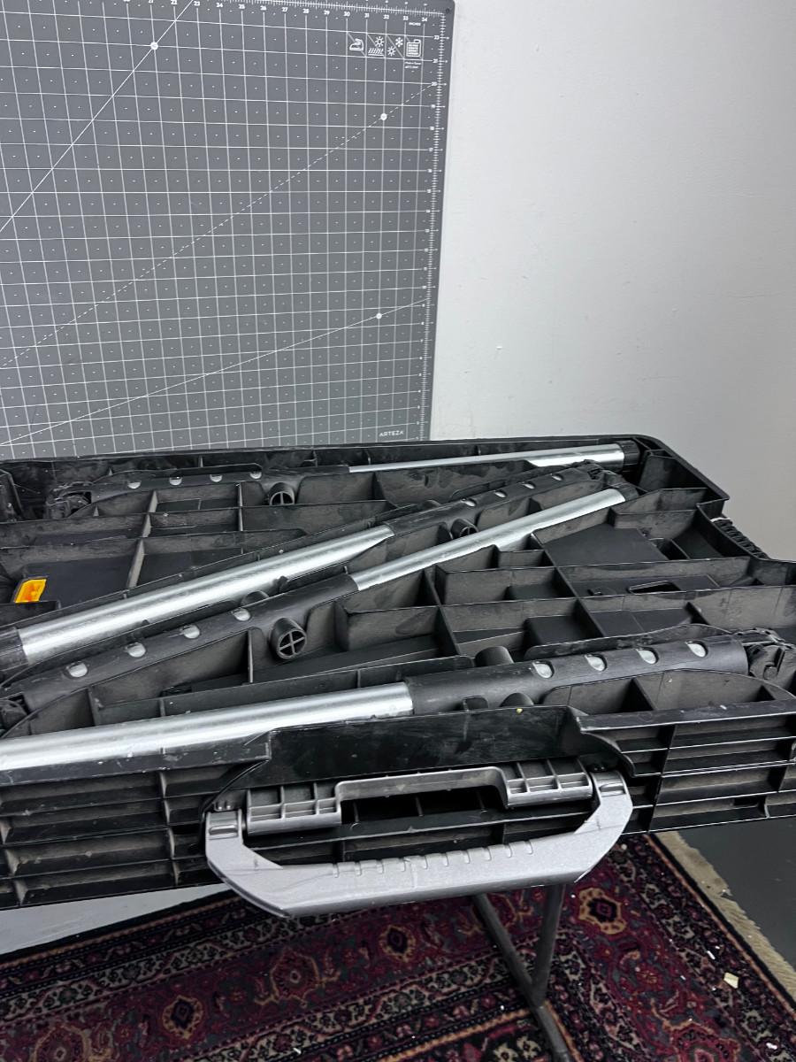 WOW! Adjustable Height. Dusty from the Garage, but like New. Work Surface is 21 X 34"