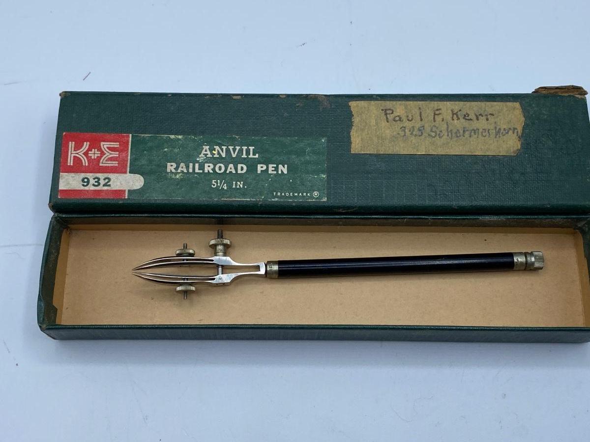 60 plus year old Anvil Railroad Pen , still in original box, labeled w old tape “ Paul F. Kerr 325 Schermerhorn “ (Prof. Kerr’s office at Columbia ) . As pictured.