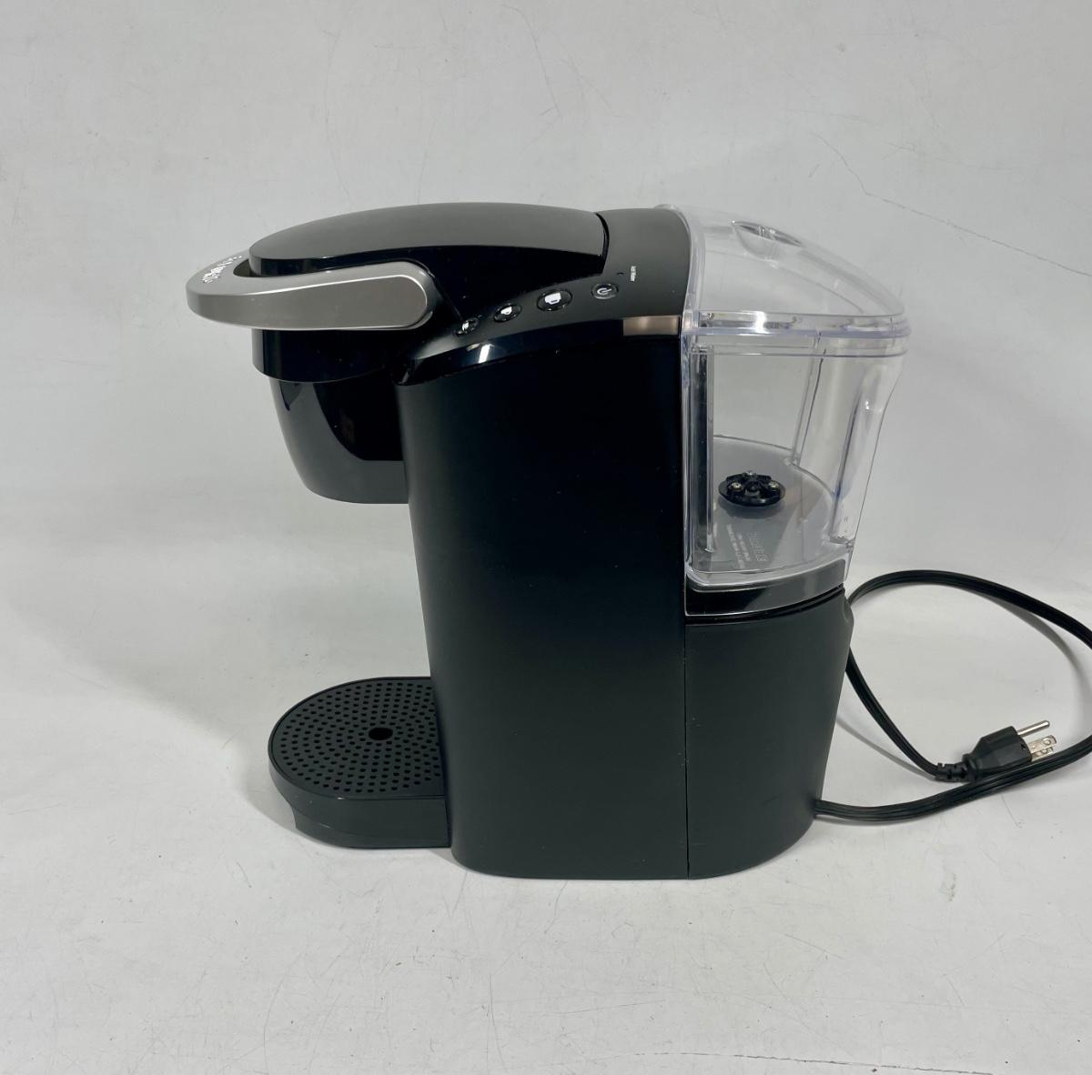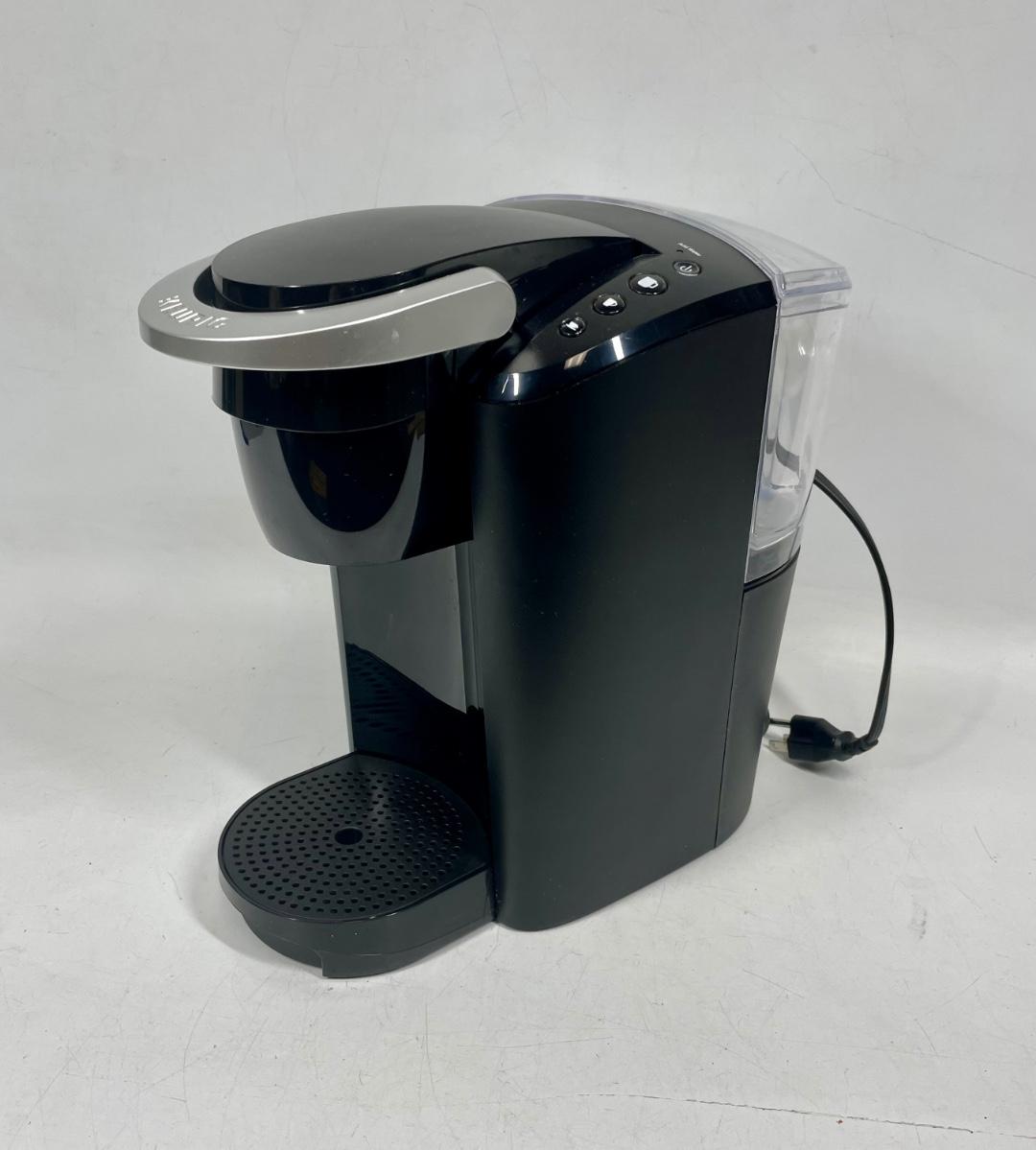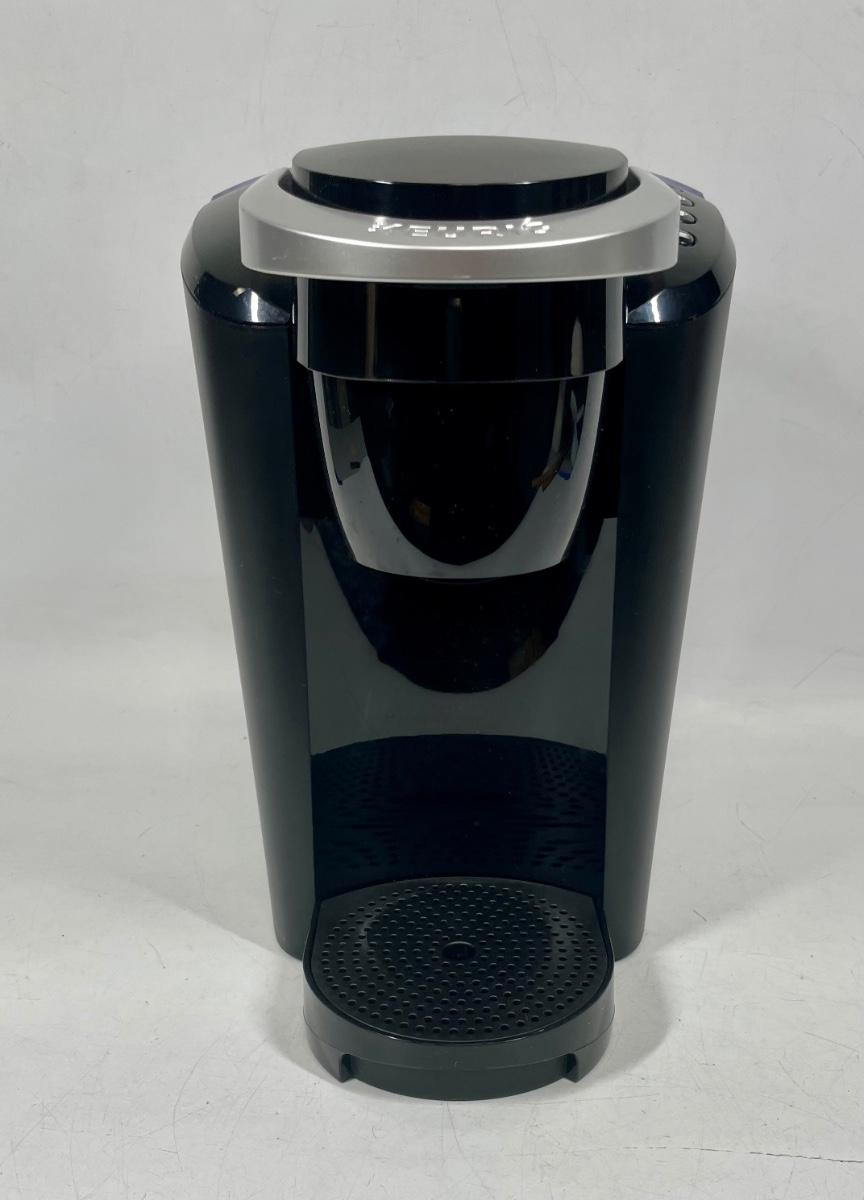 Near-new condition. Narrow design, fits easily on any countertop. Coffee brewer with settings to brew 6oz, 8oz, or 10oz cups is coffee. Uses standard K-cups. Tested, works as expected.