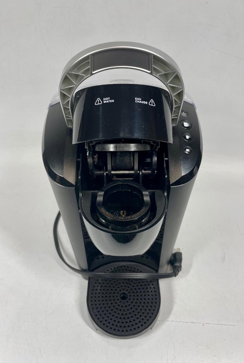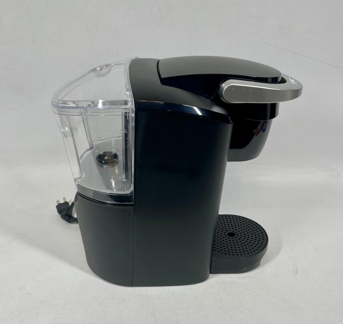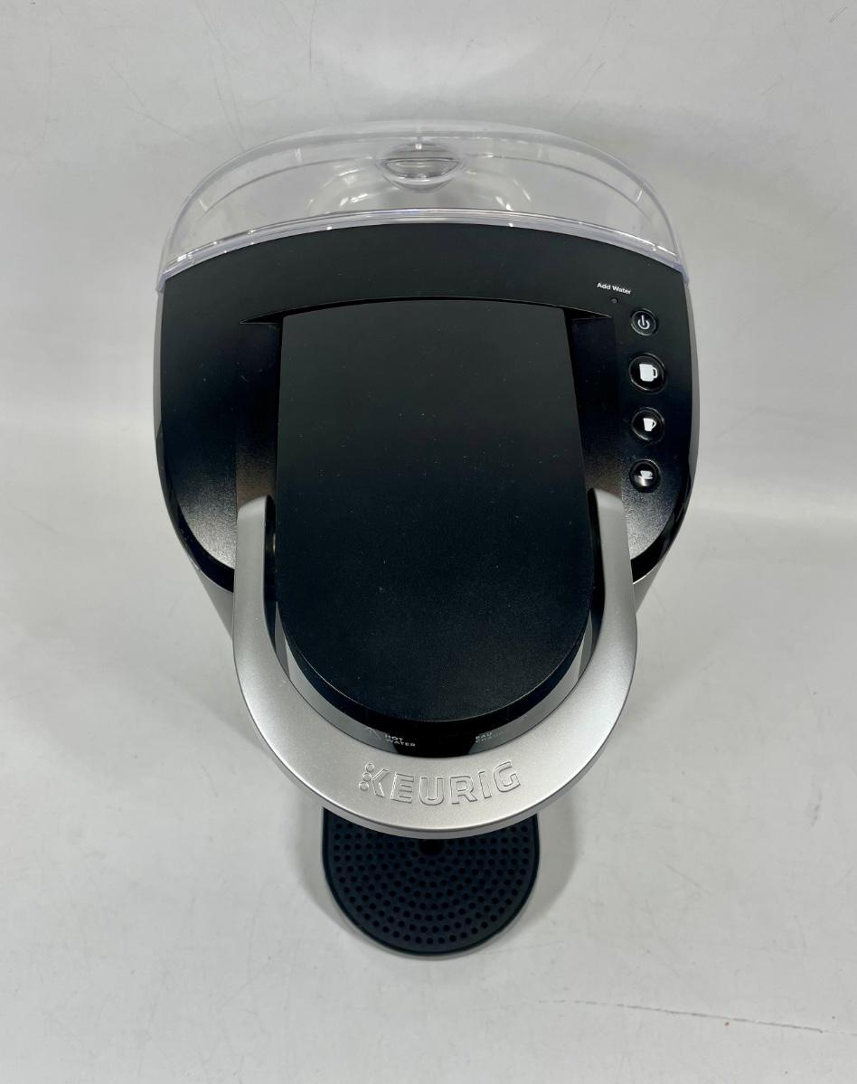 Near-new condition. Narrow design, fits easily on any countertop. Coffee brewer with settings to brew 6oz, 8oz, or 10oz cups is coffee. Uses standard K-cups. Tested, works as expected.