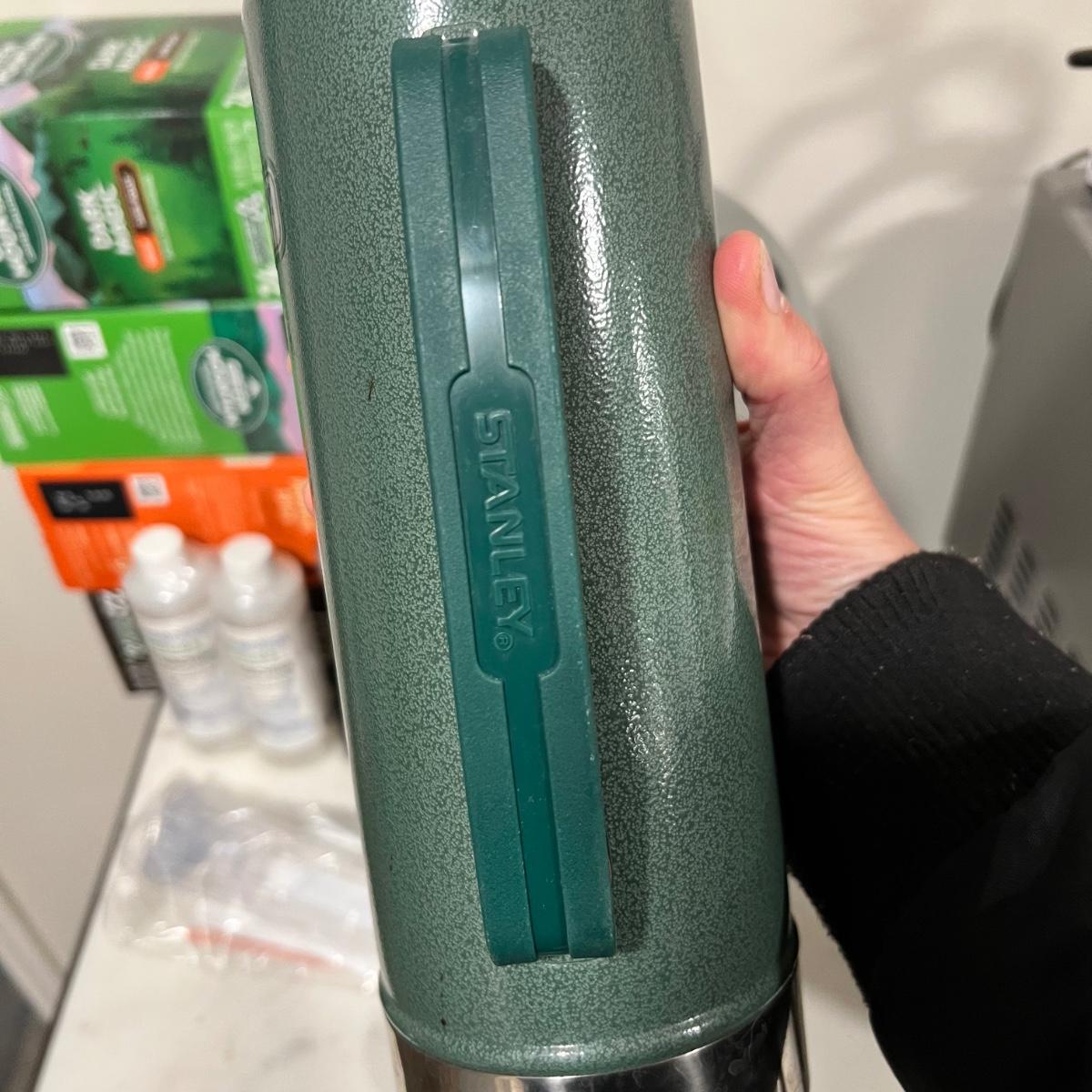 This lot has it all! See photo for model number on this Keurig machine which measures 10” x 11” x 13”H. Four unopened boxes of pods plus cleaning solution and other accessories are also included. The Stanley thermos measures 4”D x 14”H. See images.