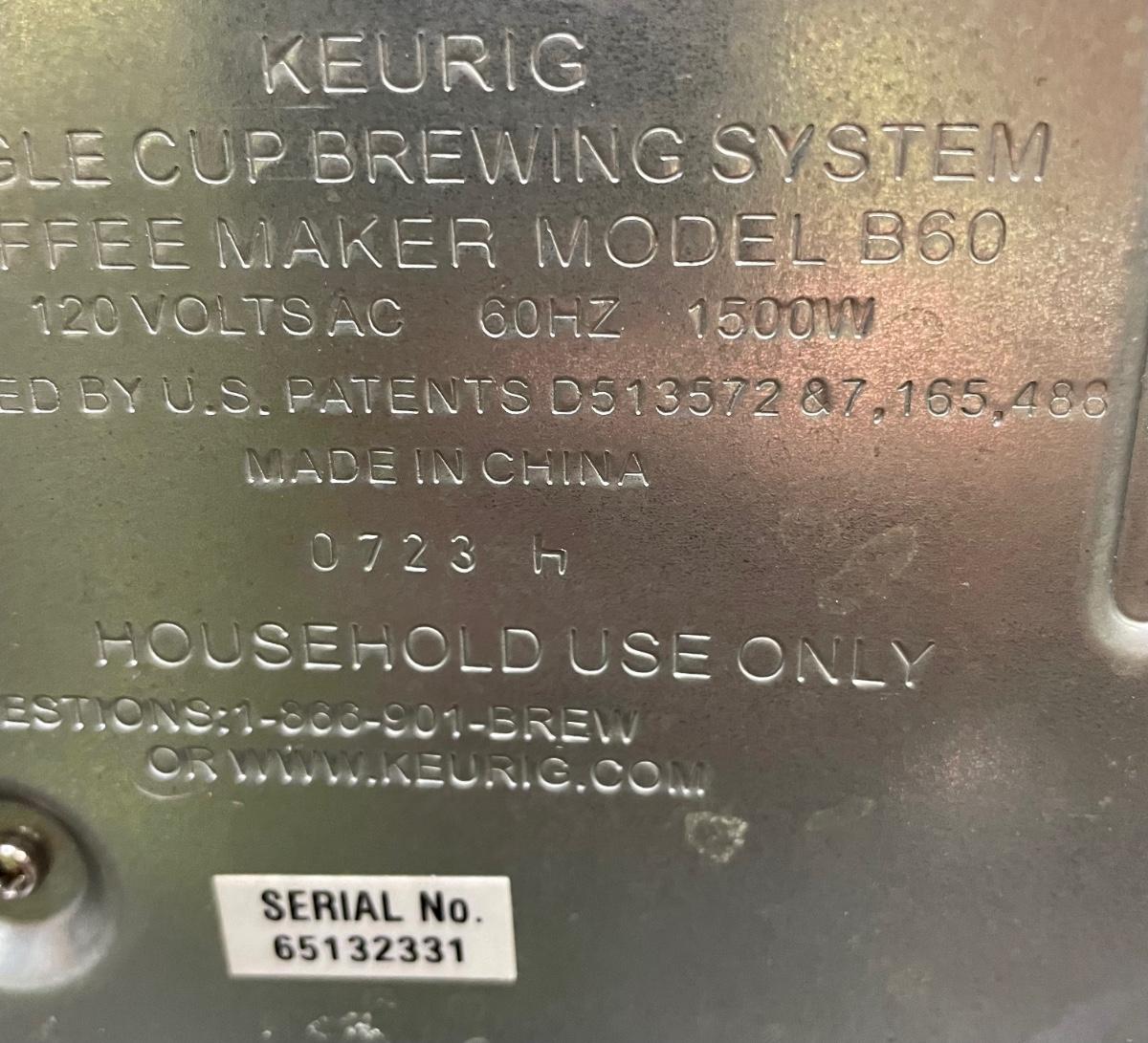 Keurig Single Cup Brewing System Coffee Maker Model B60 Black - Tested, Works Great.