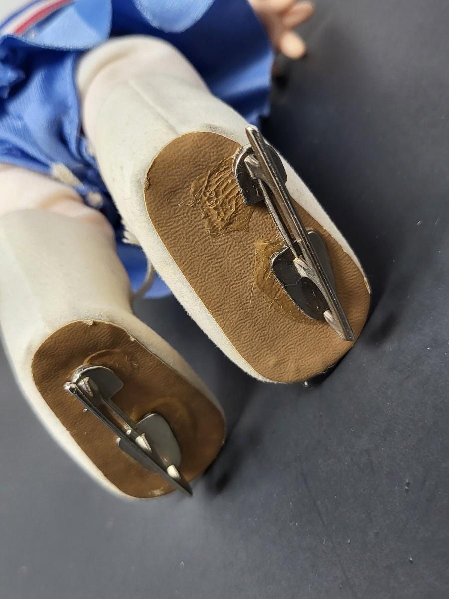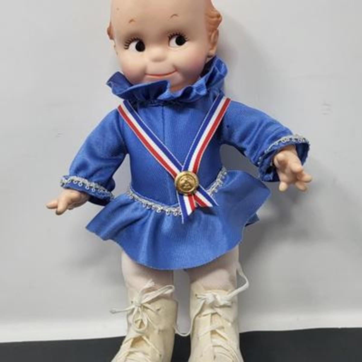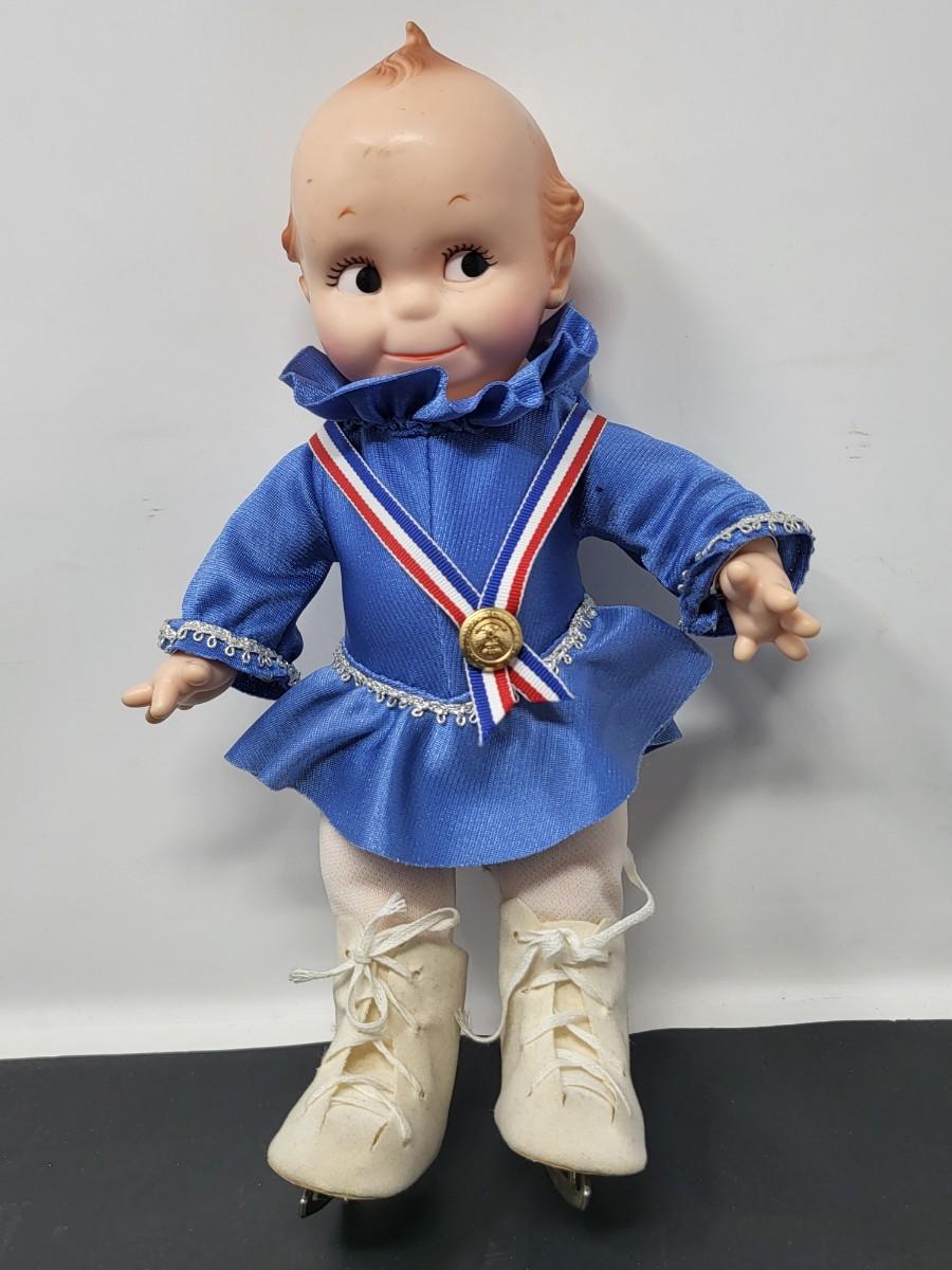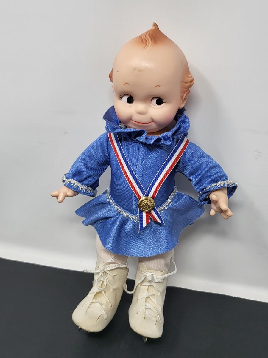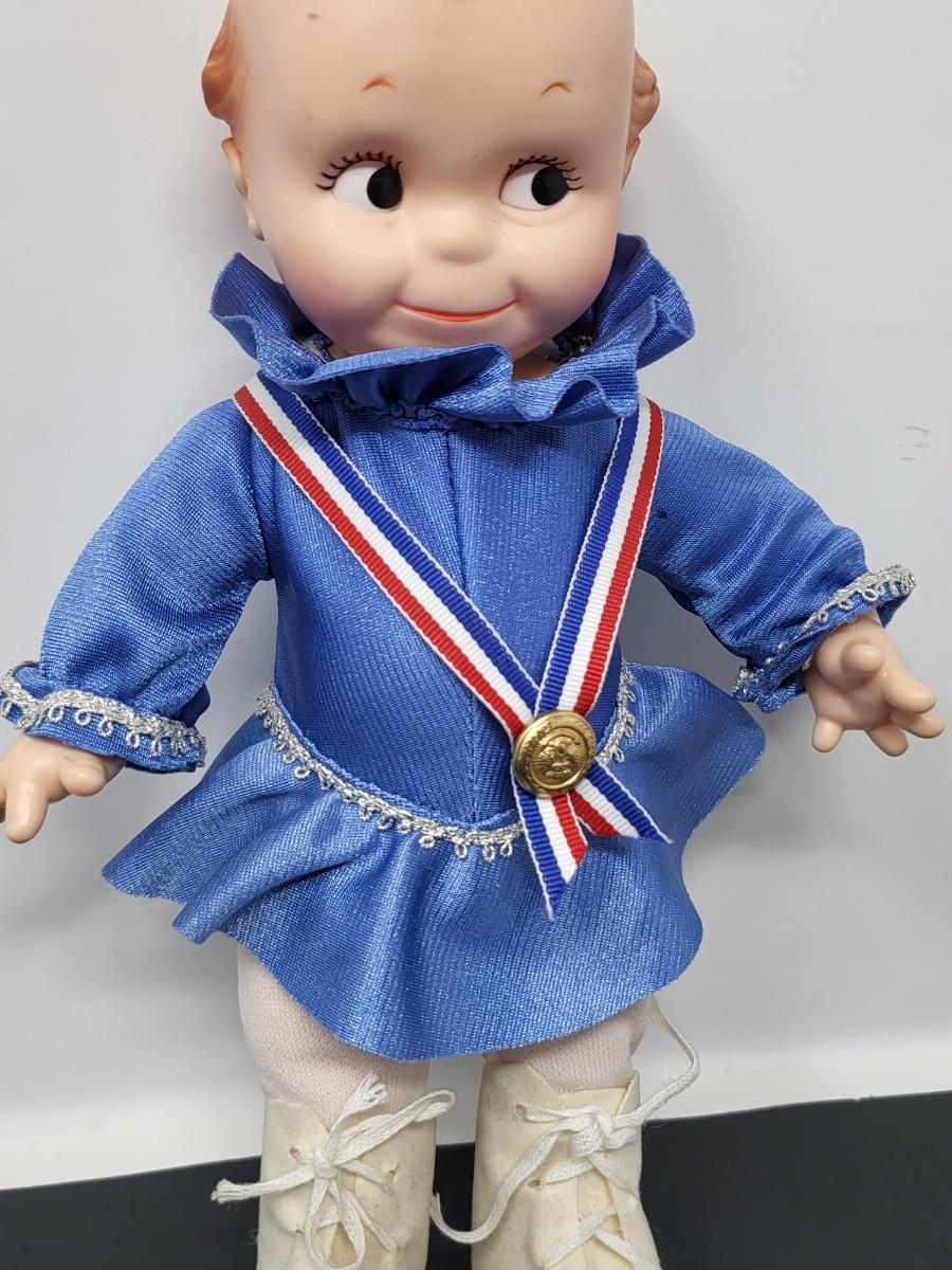 Kewpie Ice Skating Doll. Hard plastic body. Darling, Ice skating & gold medal outfit. Measures 11.5" tall