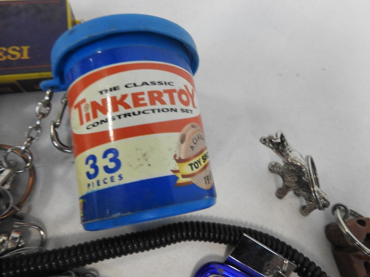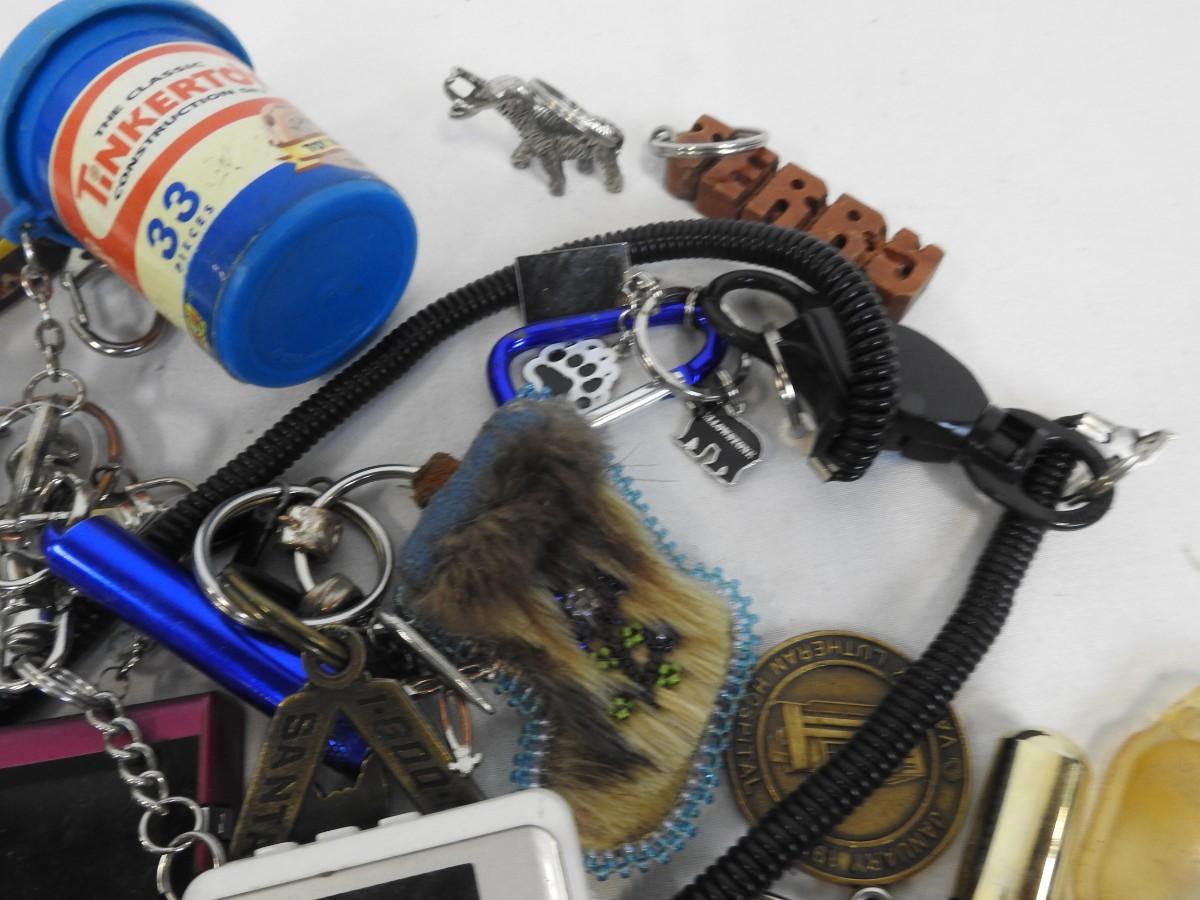 Key Chain Lot: TINKERTOY, Parchesi, Elephants, Flashlight, Paws, Gun