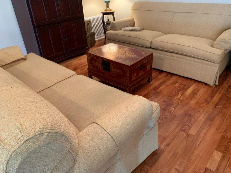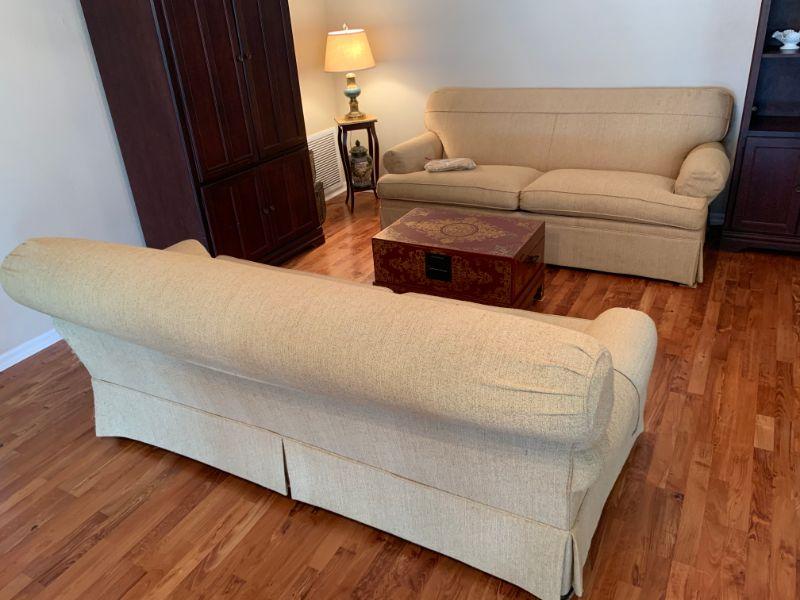 Key City Upholstered Light cream colored sofa