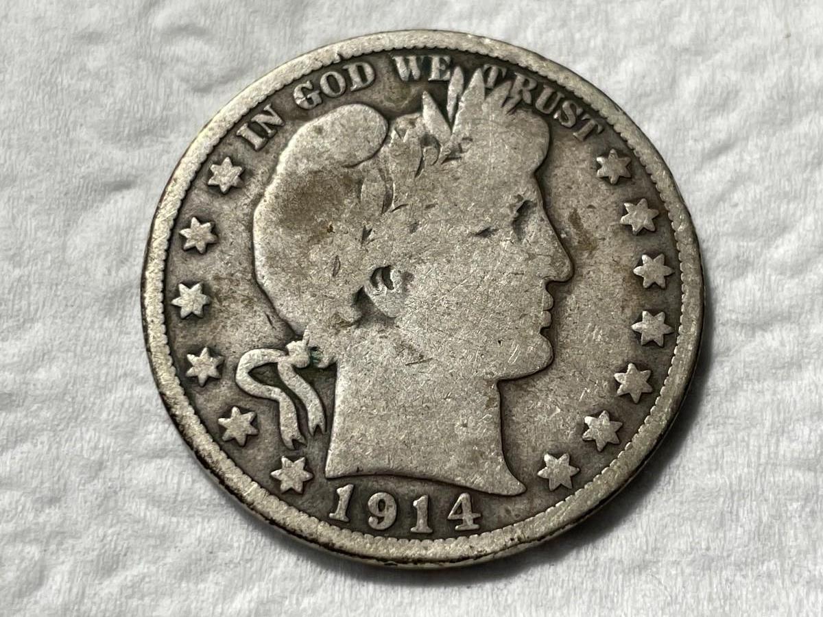 Key Date 1914-P Very Good Condition Silver Barber Half Dollar as Pictured. $5 Domestic Shipping.