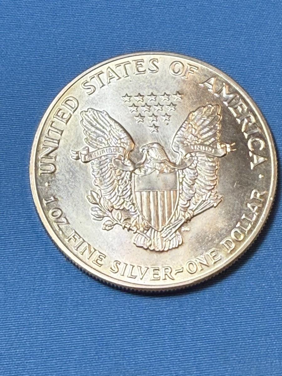 KEY DATE 1986 UNCIRCULATED SILVER EAGLE DOLLAR .999 SILVER AS PICTURED. $5 DOMESTIC SHIPPING,