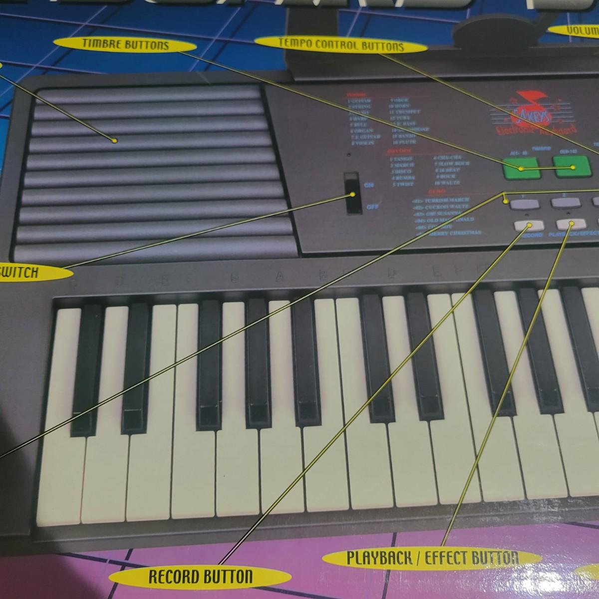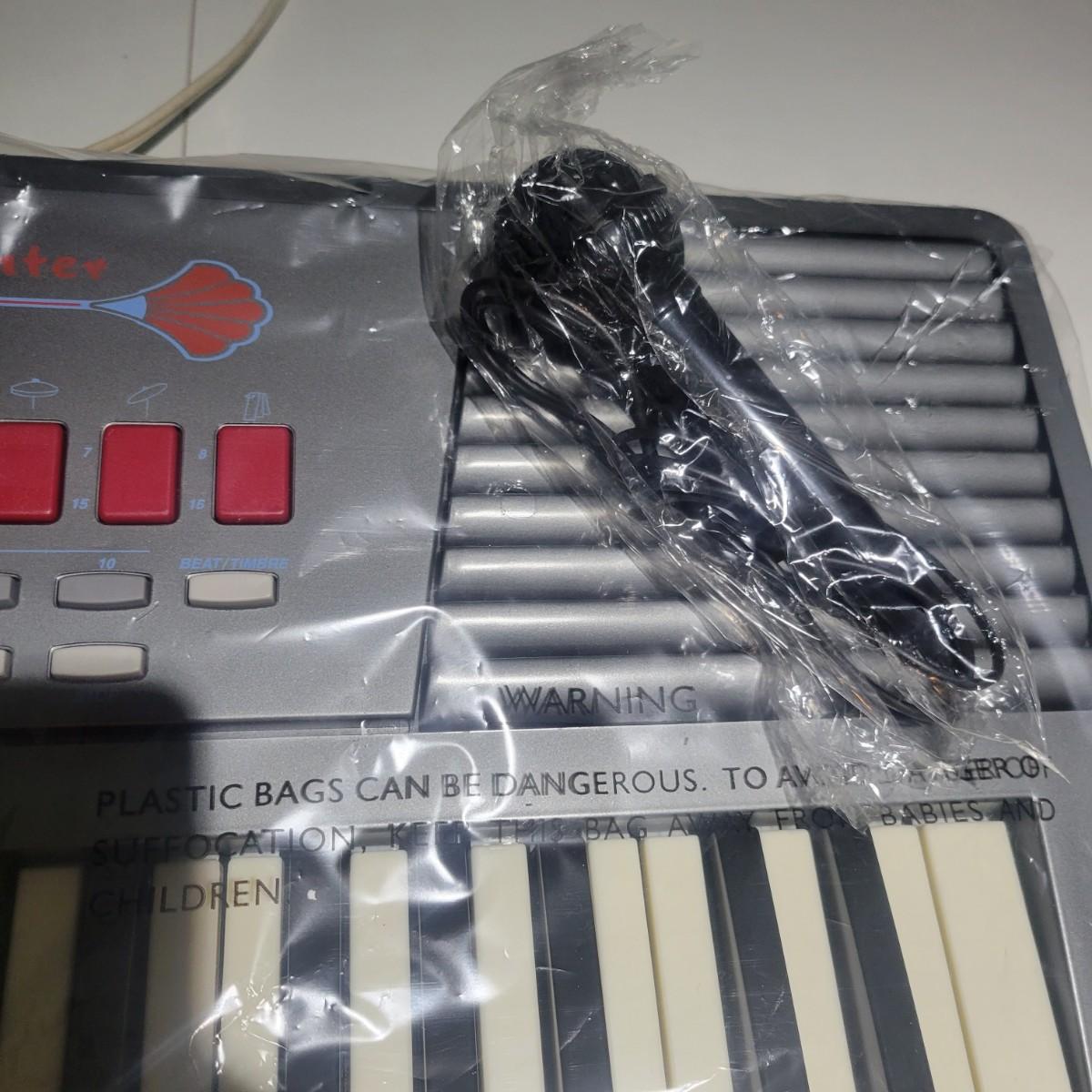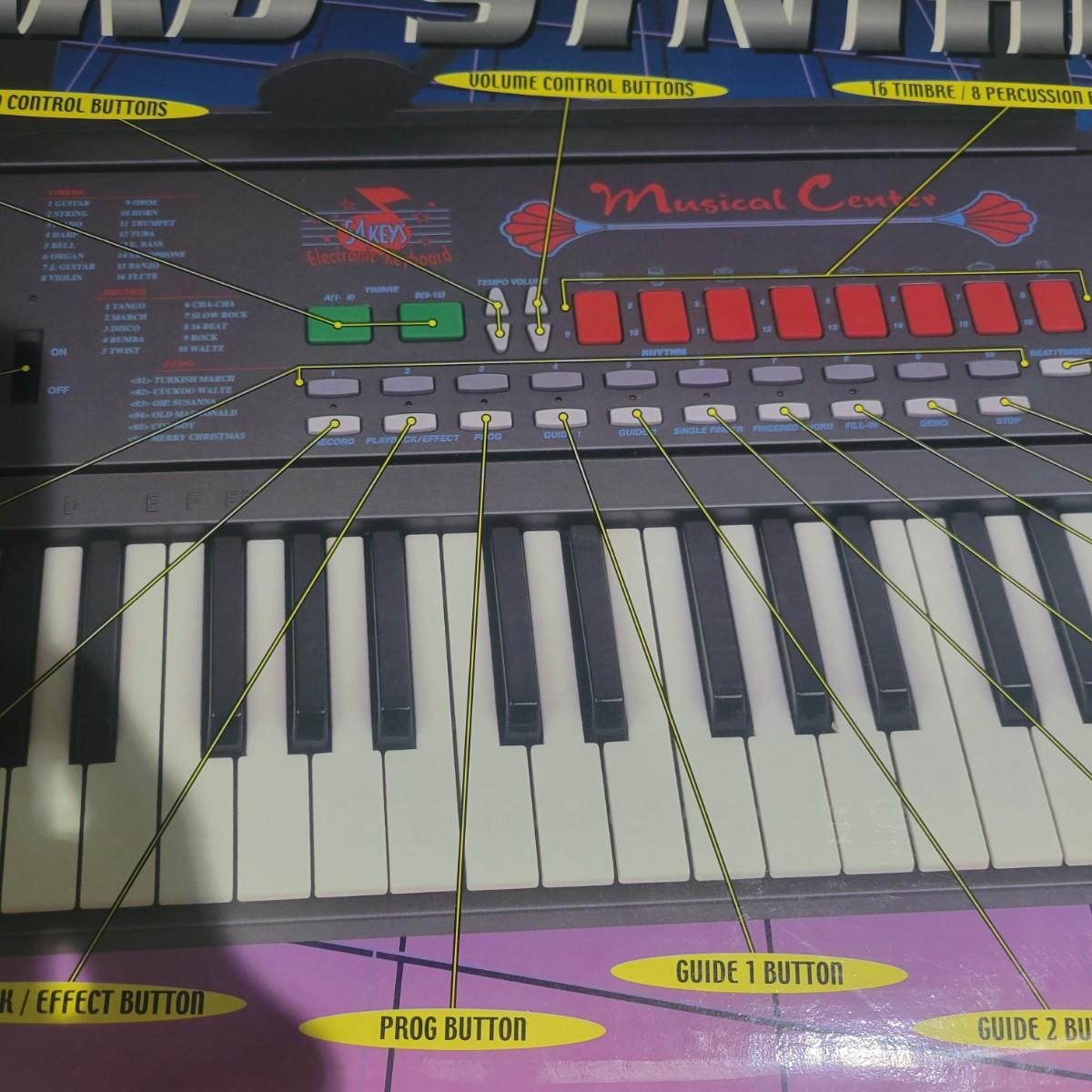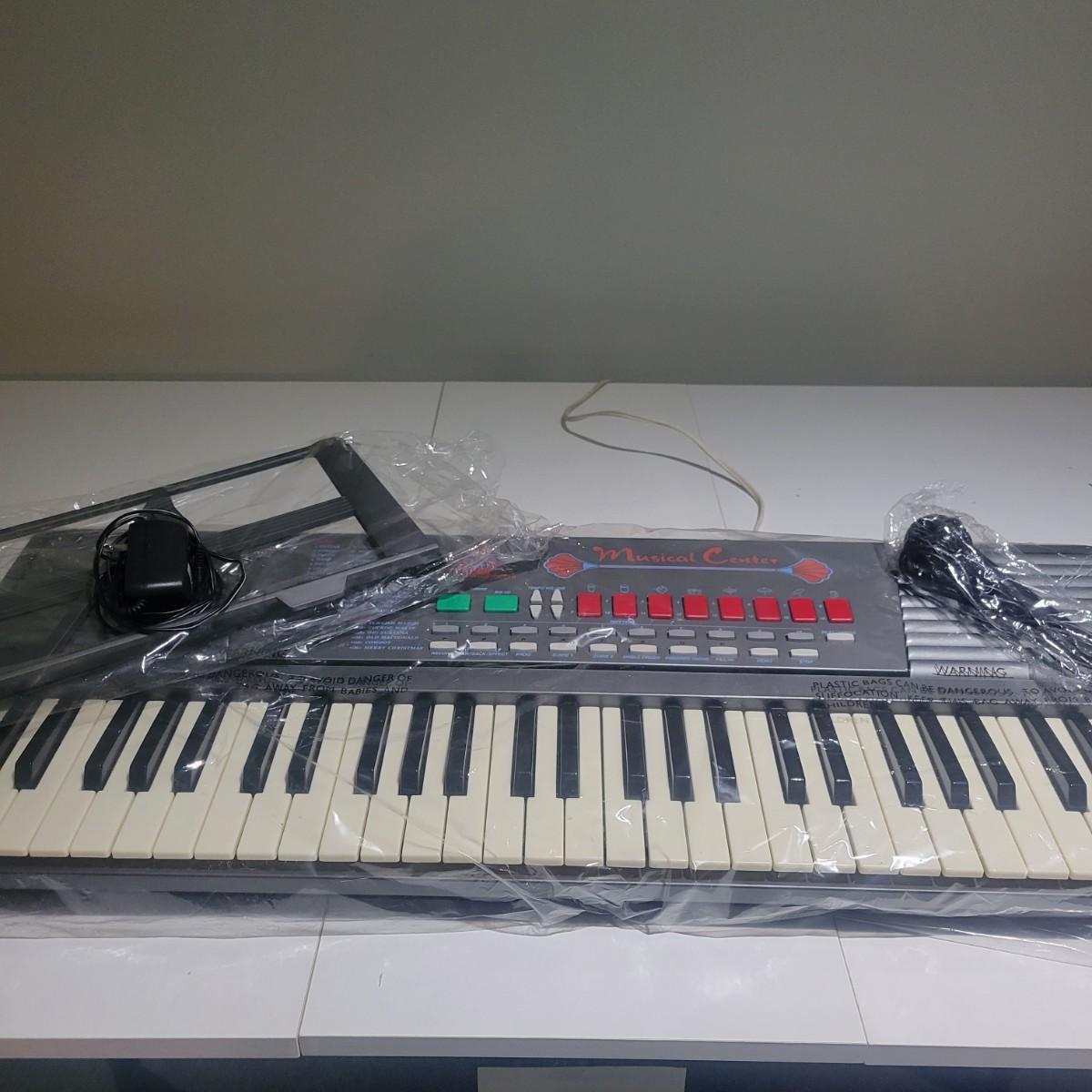 A keyboard synthesizer in original box and appears to have never been used. 54 keys and variety of different rhythms, tempos, sounds and more. Item is in excellent condition and includes all listed accessories. Box measures approximately 34" x 14" x 5.5" Shipping available
