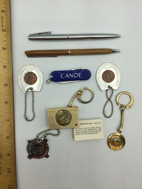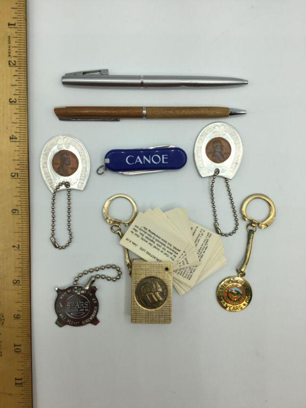 Vintage Accessory lot. Keychains, pens, pocket knife. Cool vintage accessories.