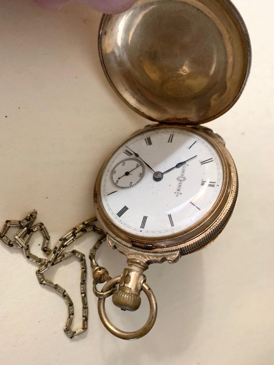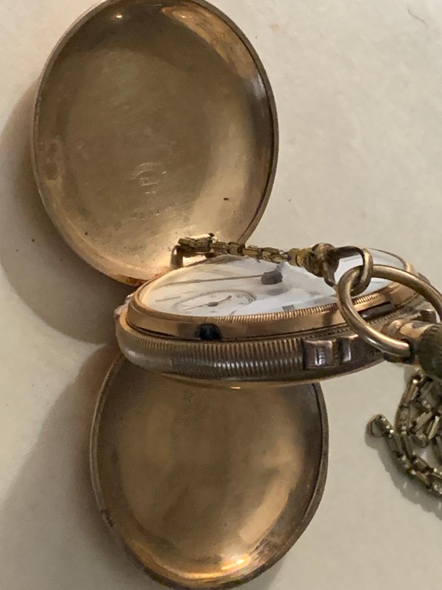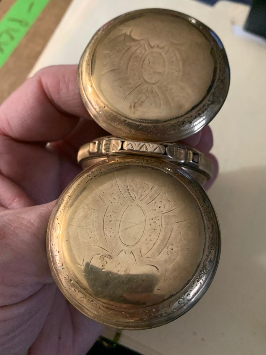 Total Weight 140 grams - Does not wind clean or keep proper time. See many photos for content and condition. Buying as is, as found in the estate.