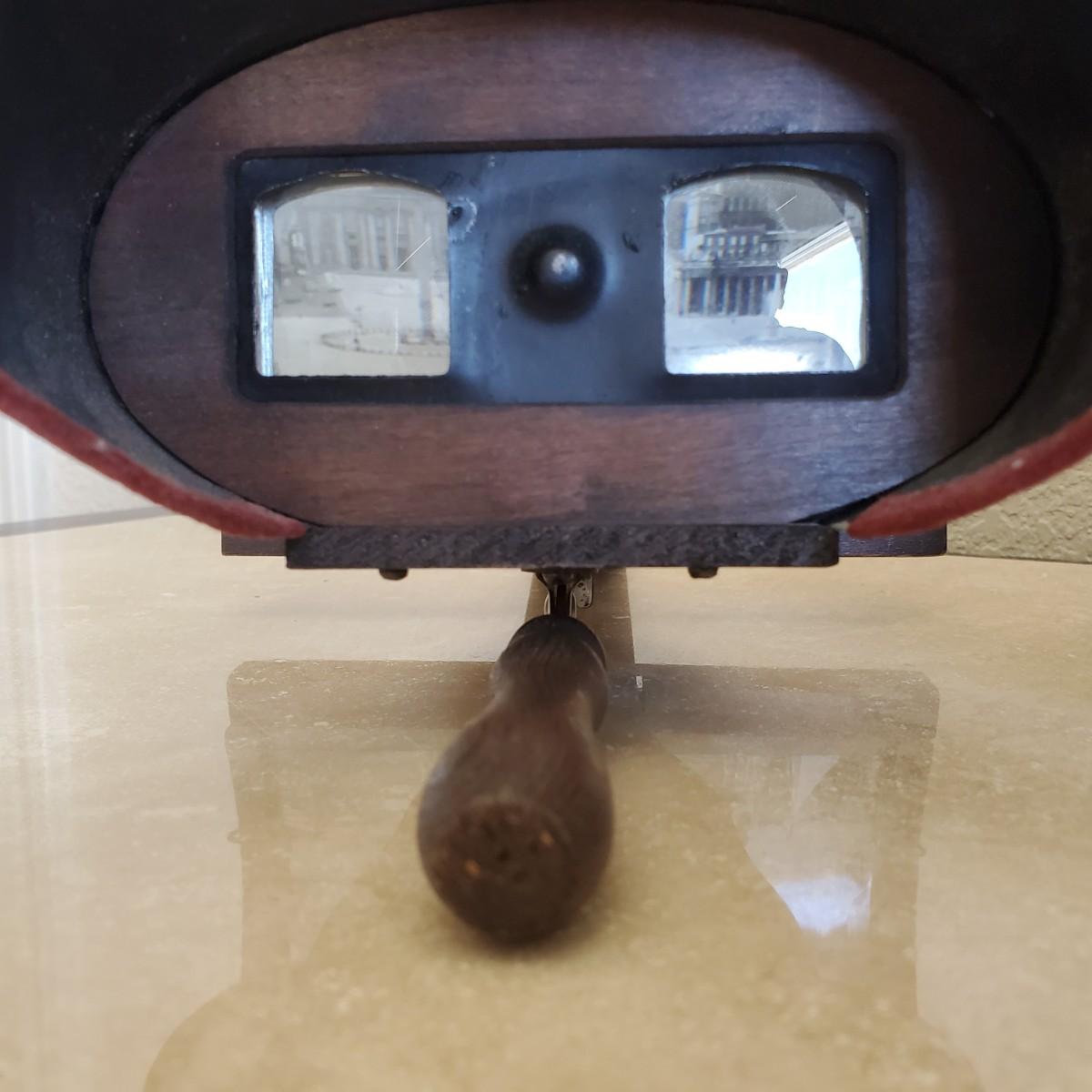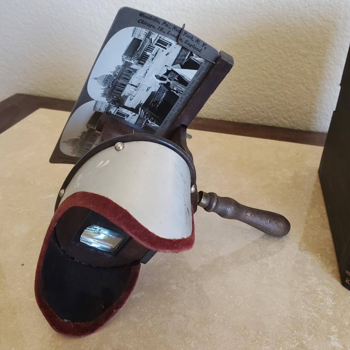 Telebinocular viewer. The cards are housed in a double spine case. Lovely condition, and a great conversation piece. All pieces move freely.