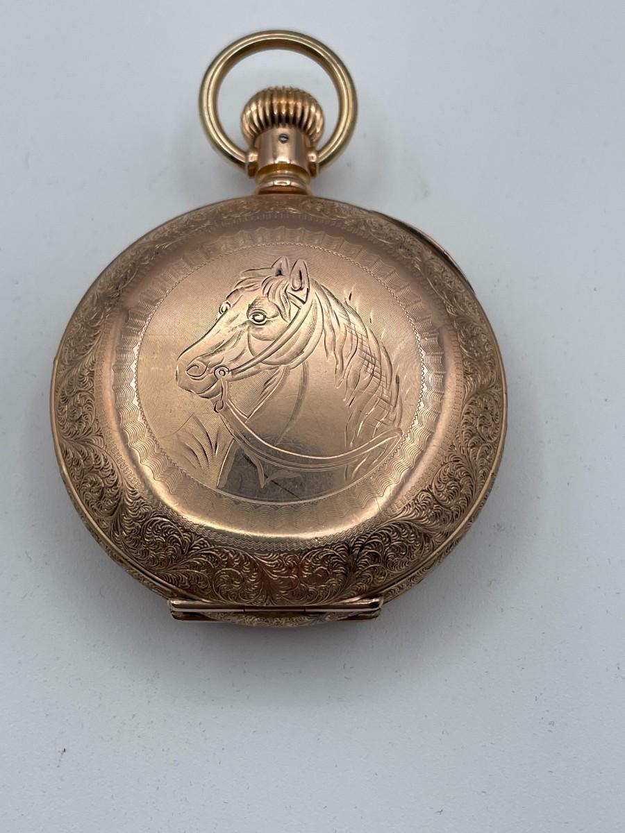 Waltham Watch Company Pocketwatch - Gold Tone - Watch Number (414752), Size 18S, with Champion Gold Filled (based on research) Case Number (2600704). Condition - Winder & watch are in working order. This is not a guarantee that all parts are original nor is the watch autheniticated. Estimated Value - $525 - $695. Year 1870