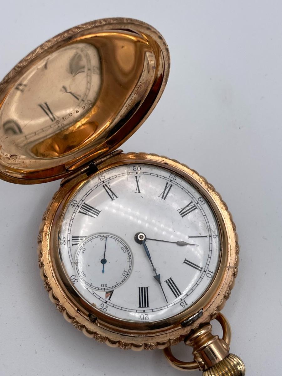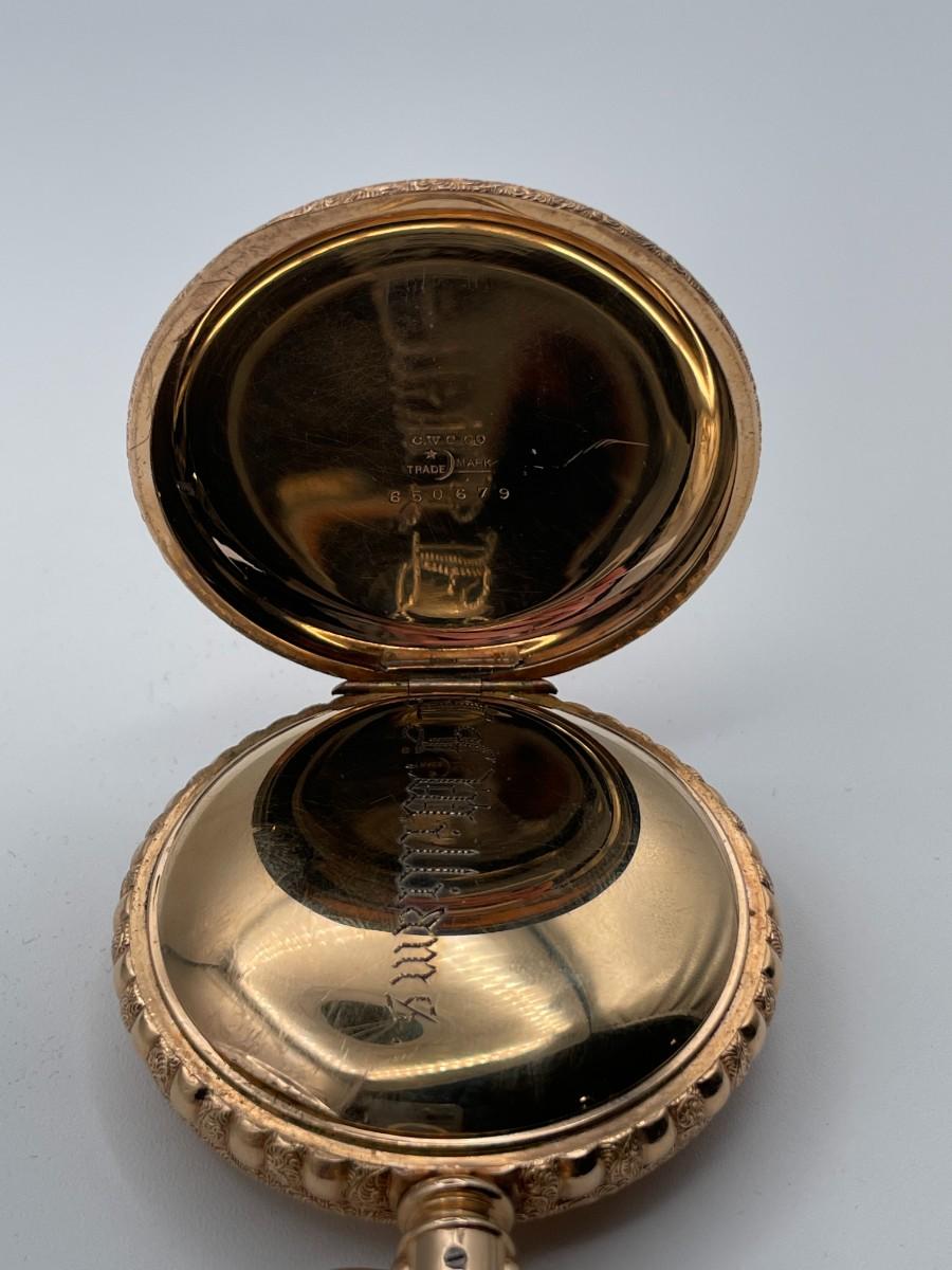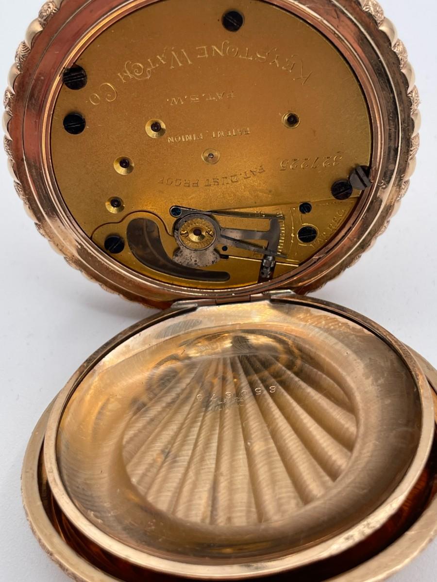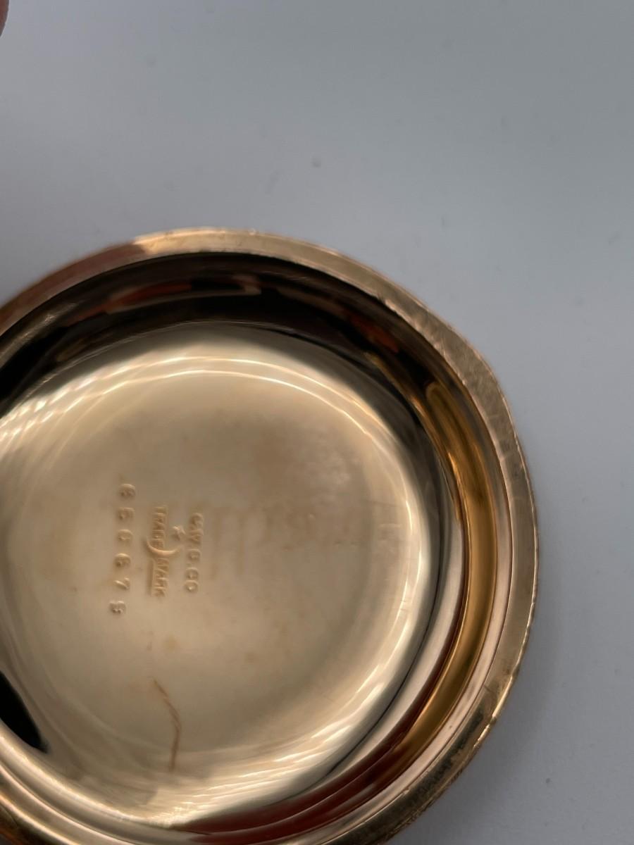 Keystone Watch Company Pocketwatch - Gold Tone (327225), Size 18S with CWC Co Gold Filled Case Number (650679). Condition - Winder works but Watch is NOT in working order. The glass has fallen out of the front ring. This is not a guarantee that all parts are original nor is the watch autheniticated. Estimated Value - $280 Year 1882.