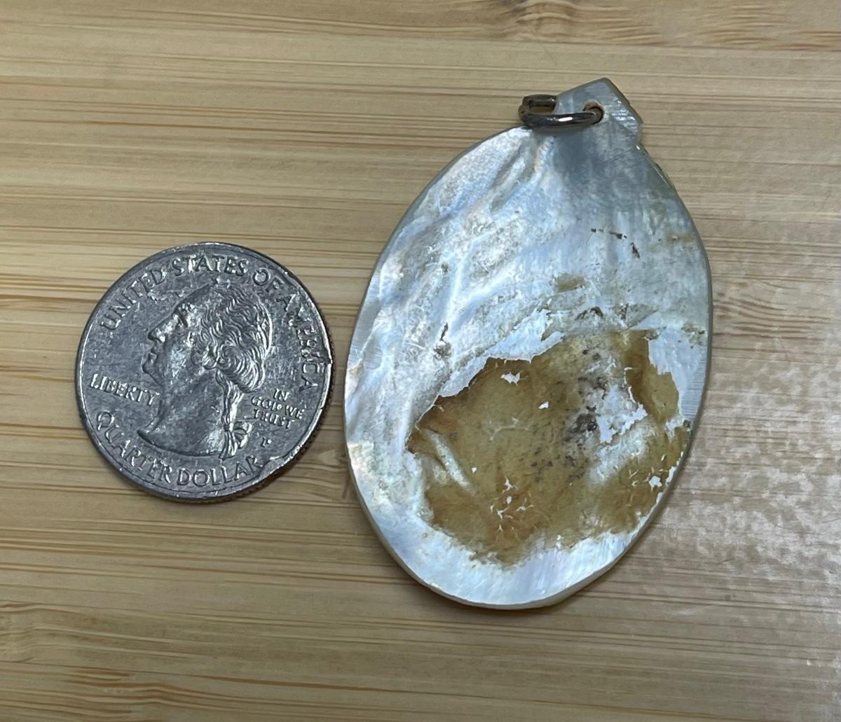 Vintage Mother of Pearl Abalone Shell Pendant Charm with Painted Horsemen Riders Art