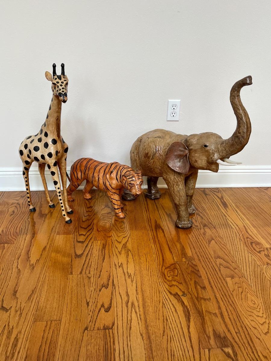 Leather Wrapped Jungle Themed Figures ~ Set Of Three (3)