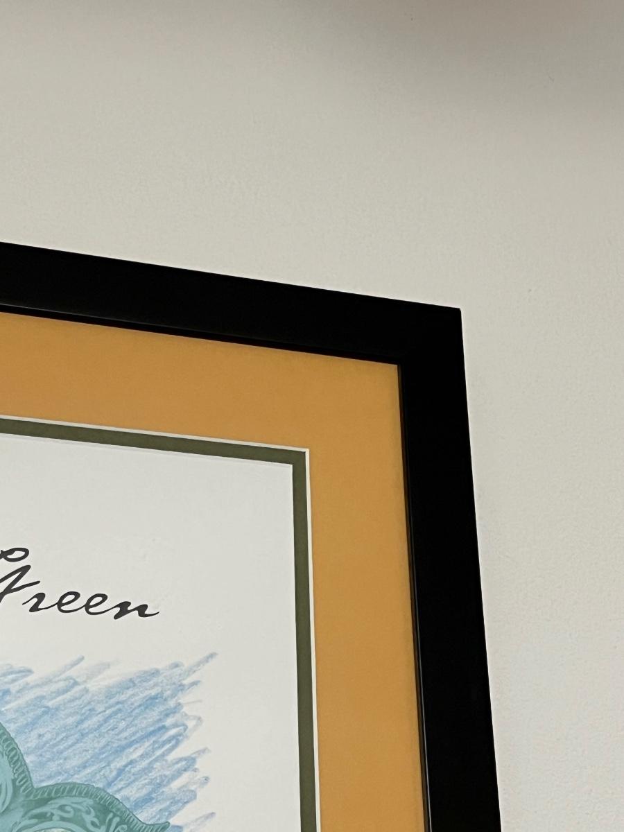 The reflection in the glass is the curtain in the background ~ 33.5” H x 42.5” W
