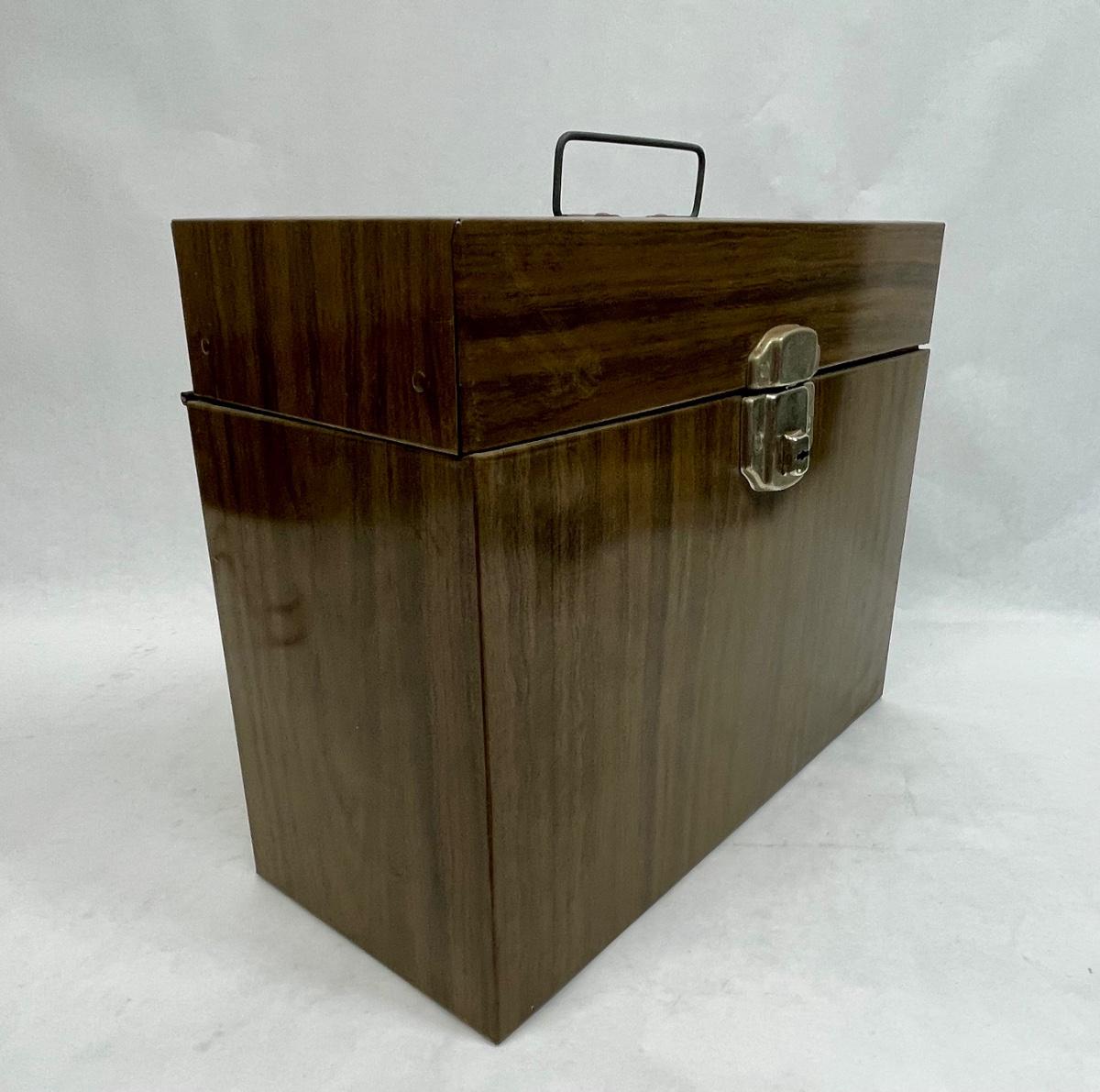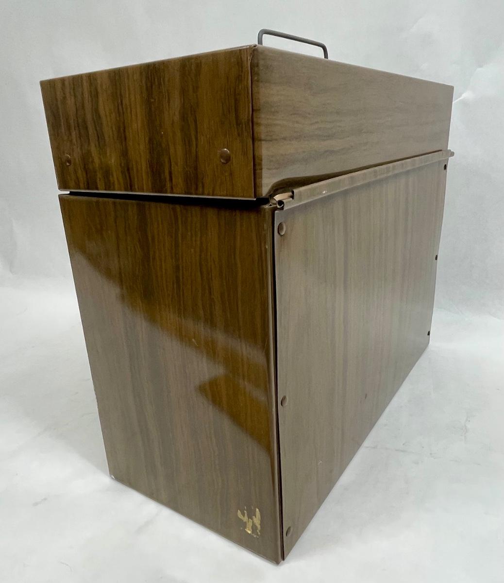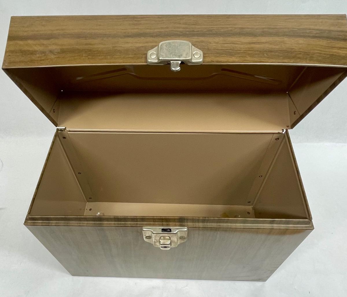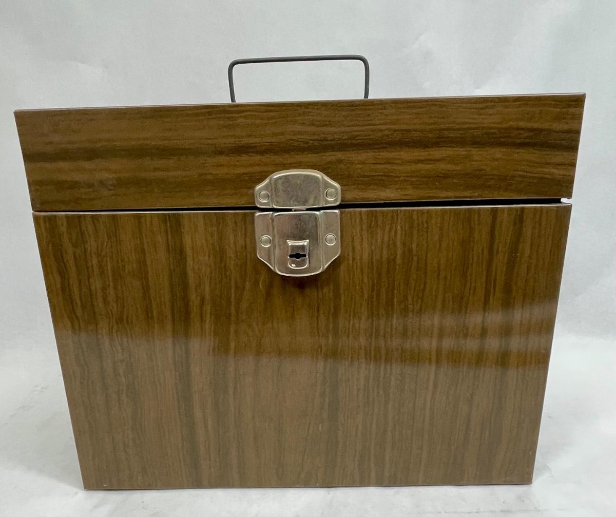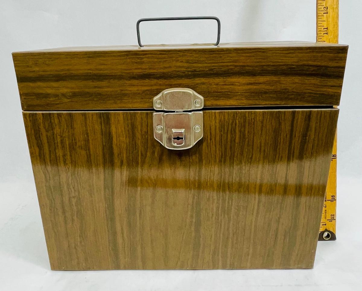 In good condition, except hinge needs repair, it doesn't always close. Key included.