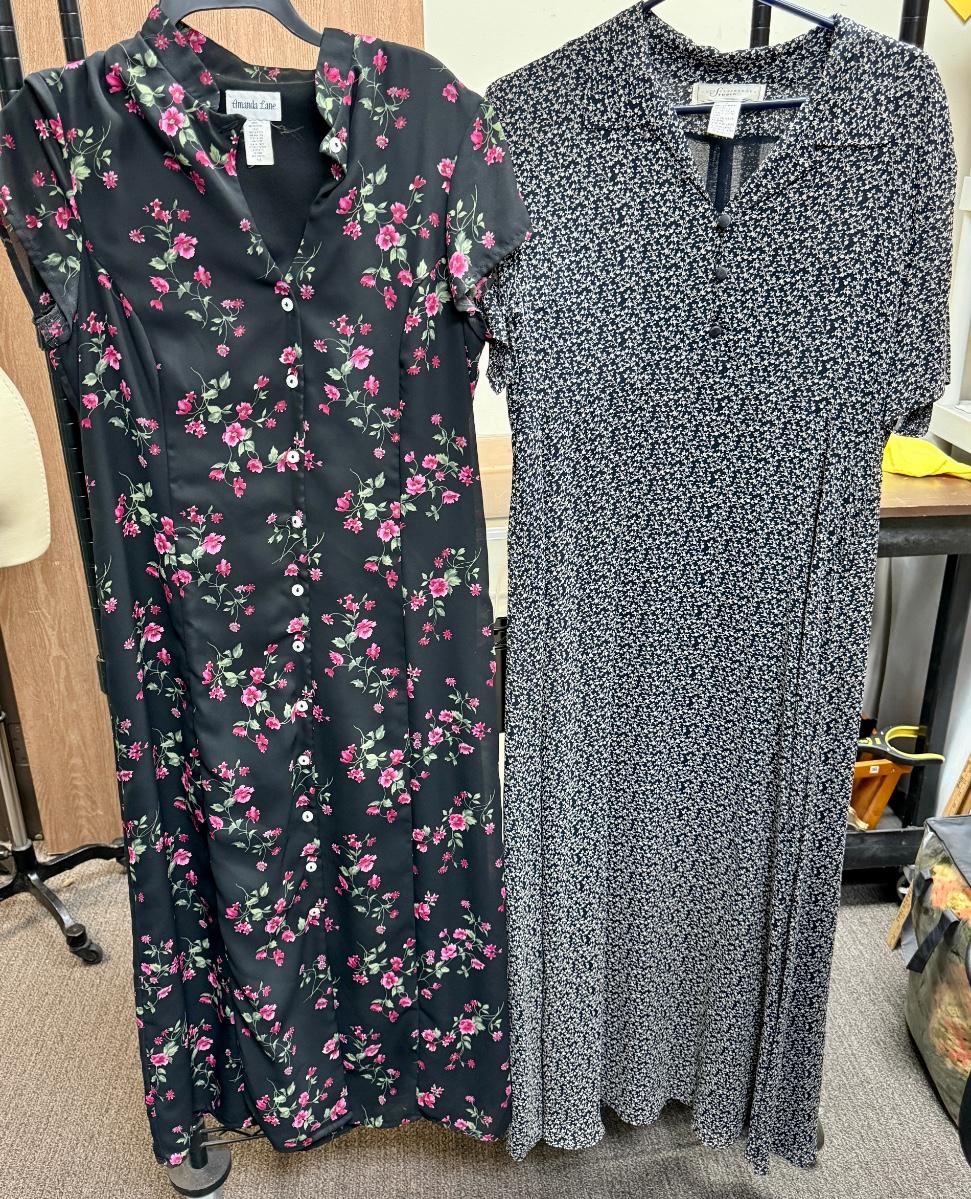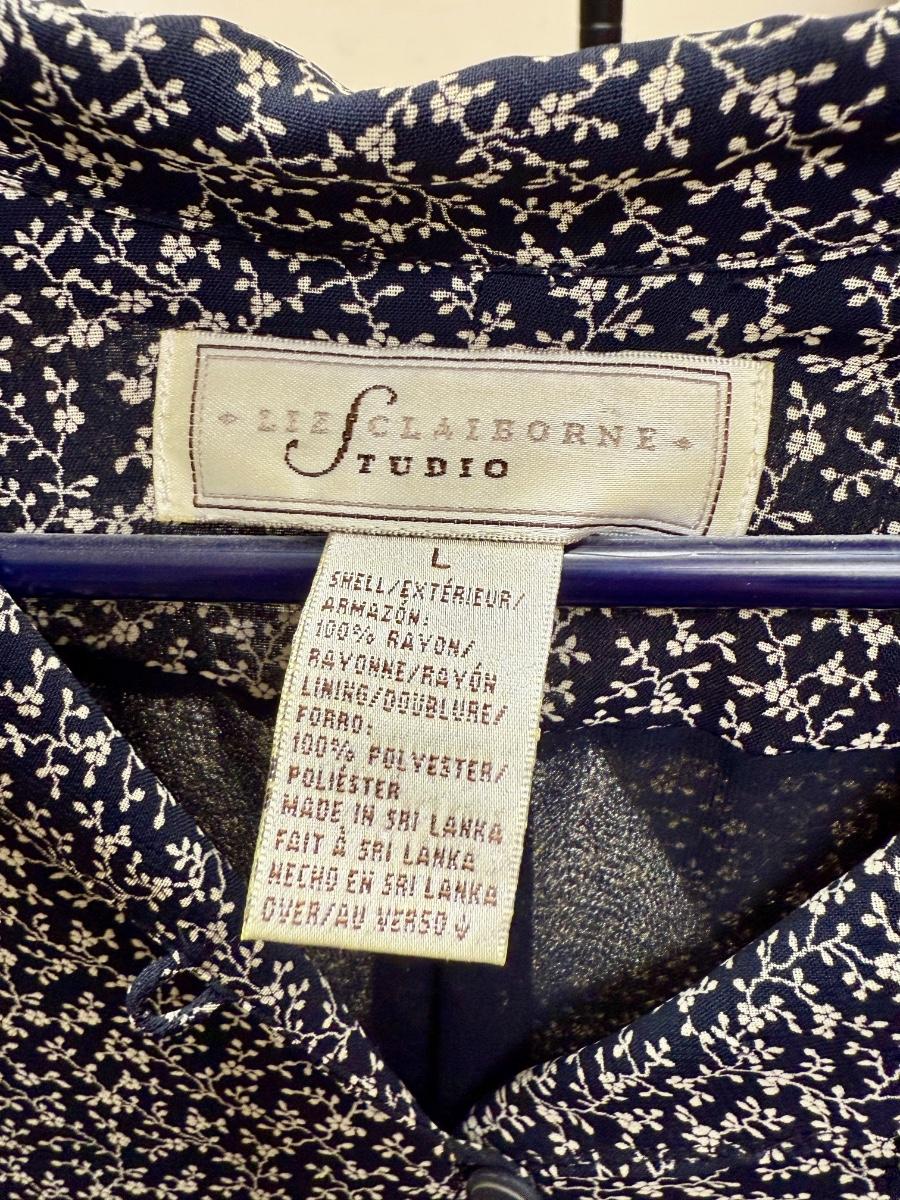 By Amanda Lane (size 14) and Liz Claiborne Studio (size Large). Good condition. Both are 100% polyester.