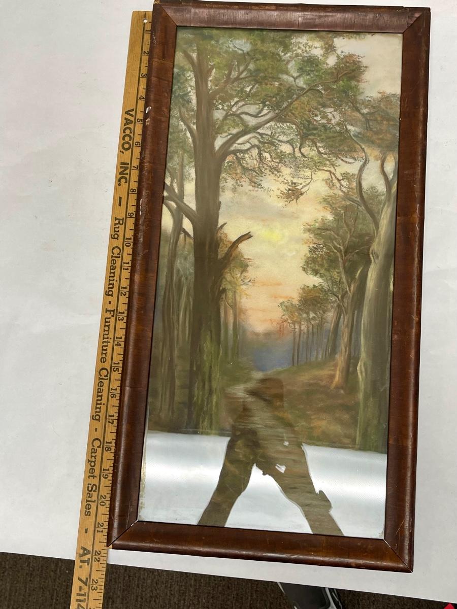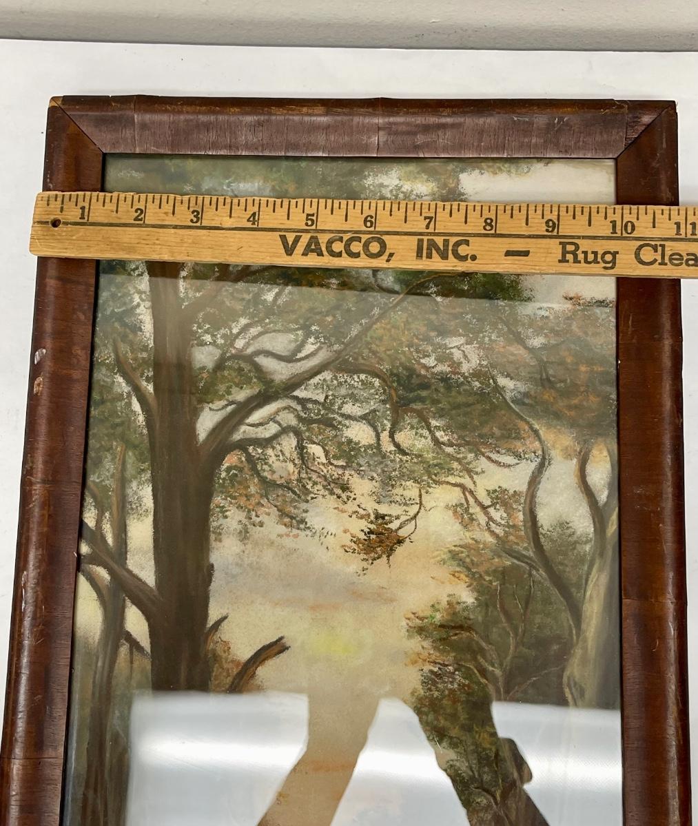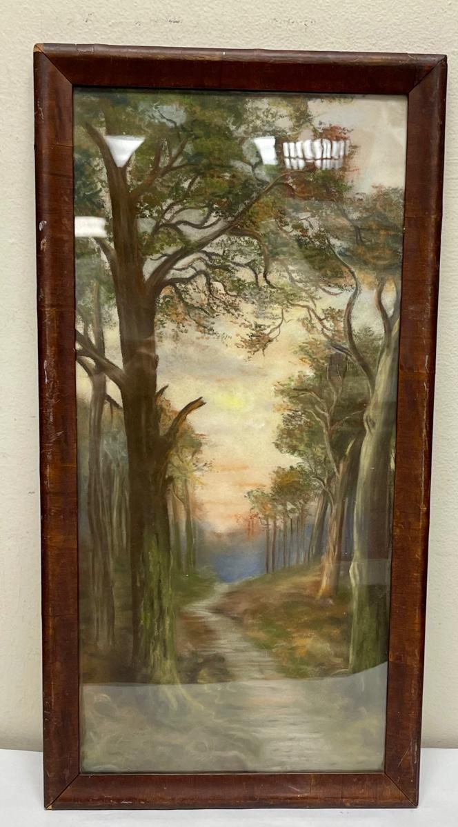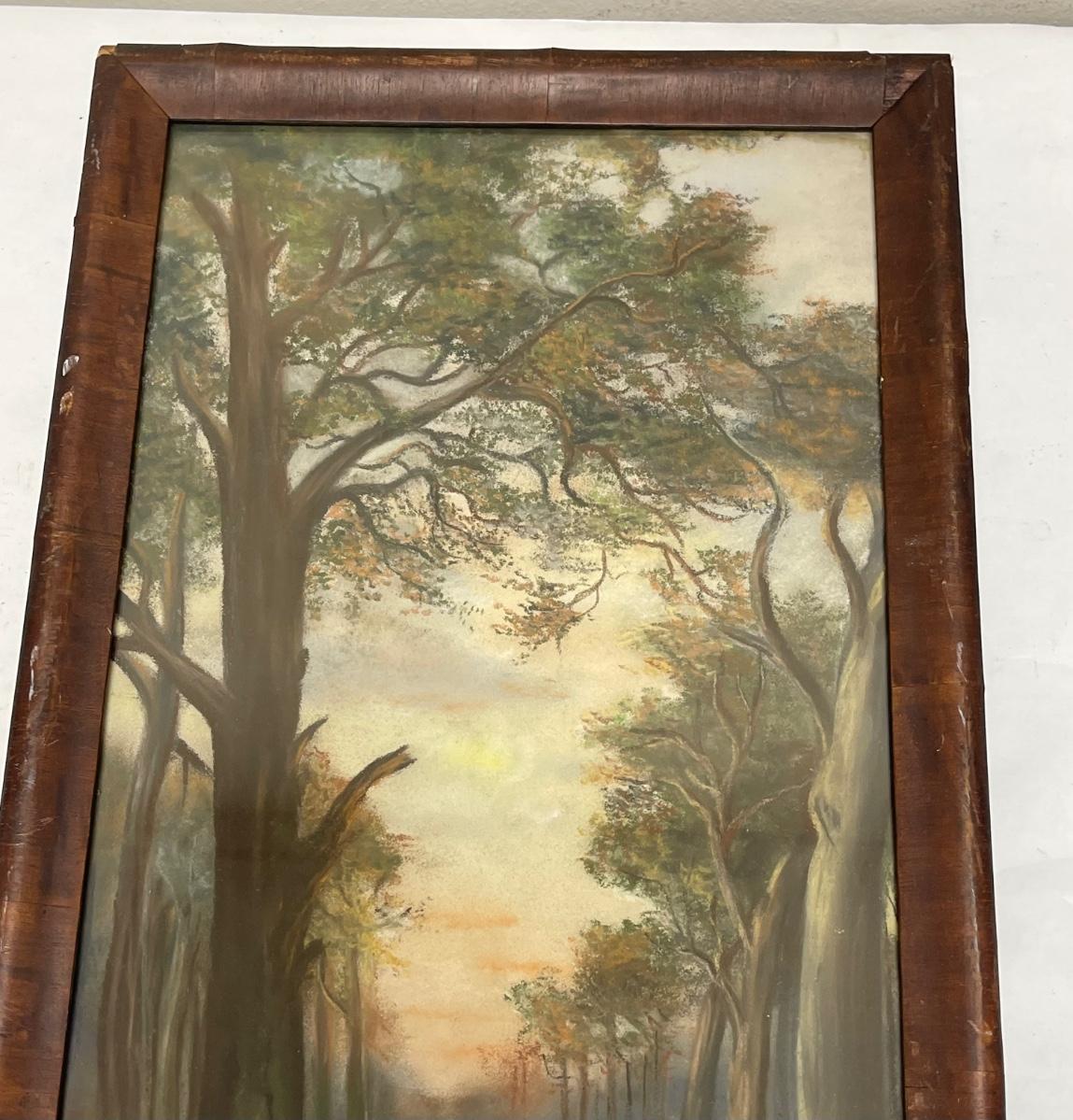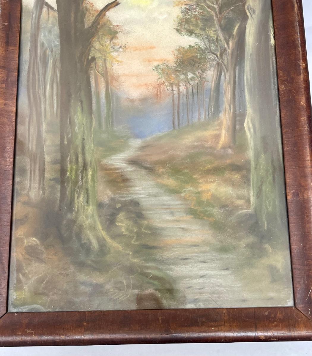 Antique Framed Forest Path chalk on paper landscape