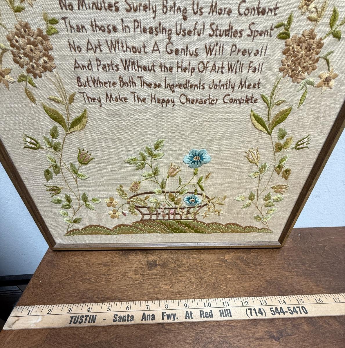 Framed Reproduction sampler titled “Sarah. Boston 1815” by Hands Across the Sea Samplers