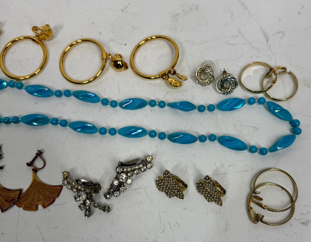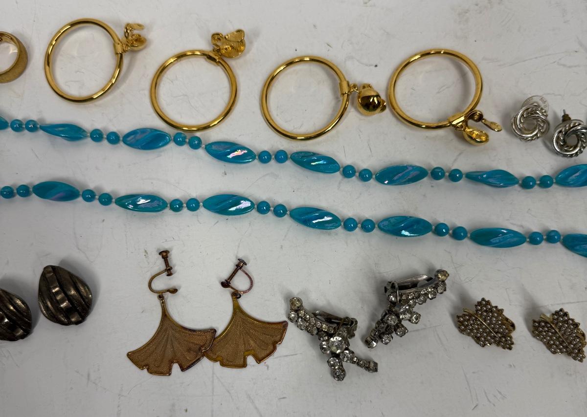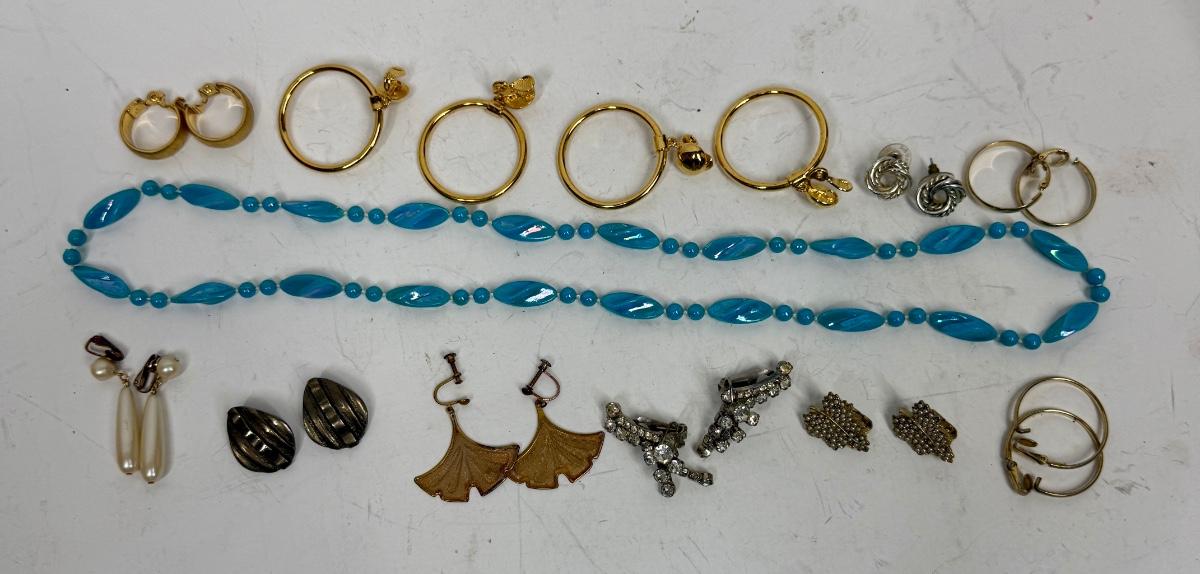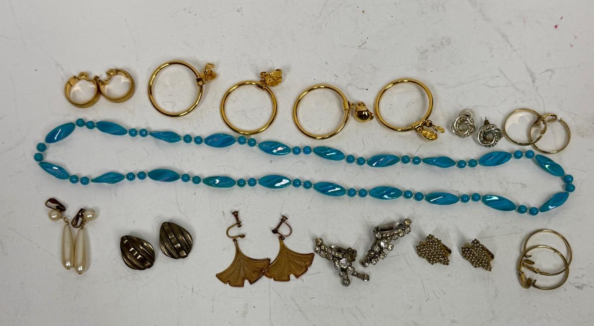Large 12pc Vintage Jewelry Lot -Blue Beaded Necklace & Earrings mostly clip-on