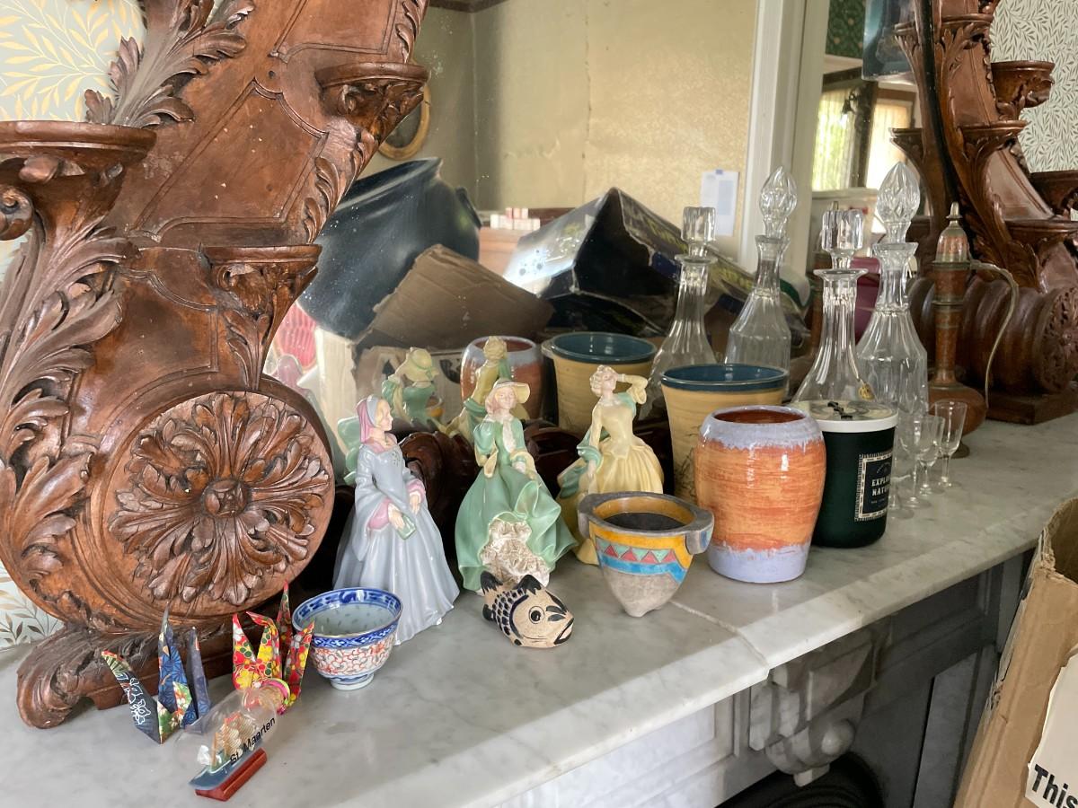Figurines, Candles, Glasses, Persian Pitcher (?), Vases and Pots