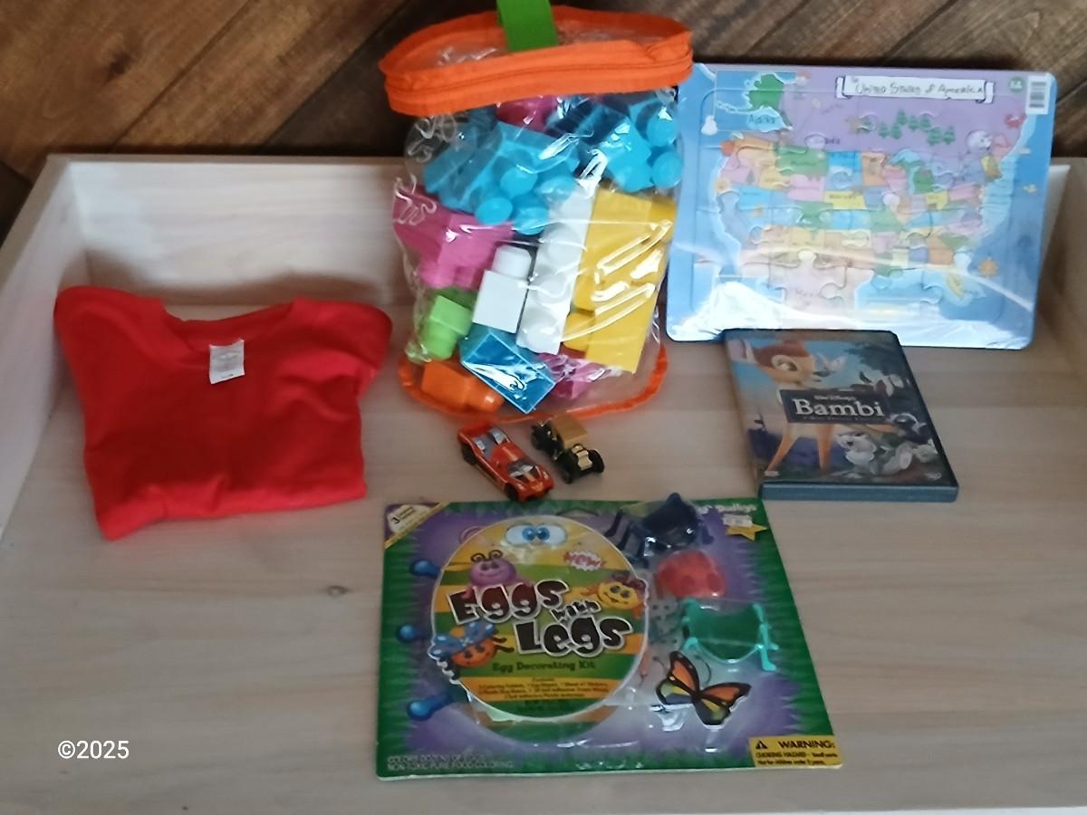 Kid toys - Bambi DVD - toy cars - Large lego's and more