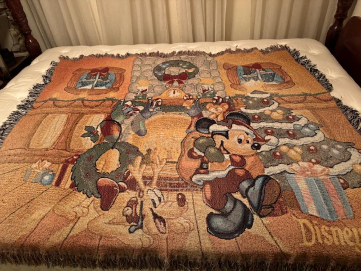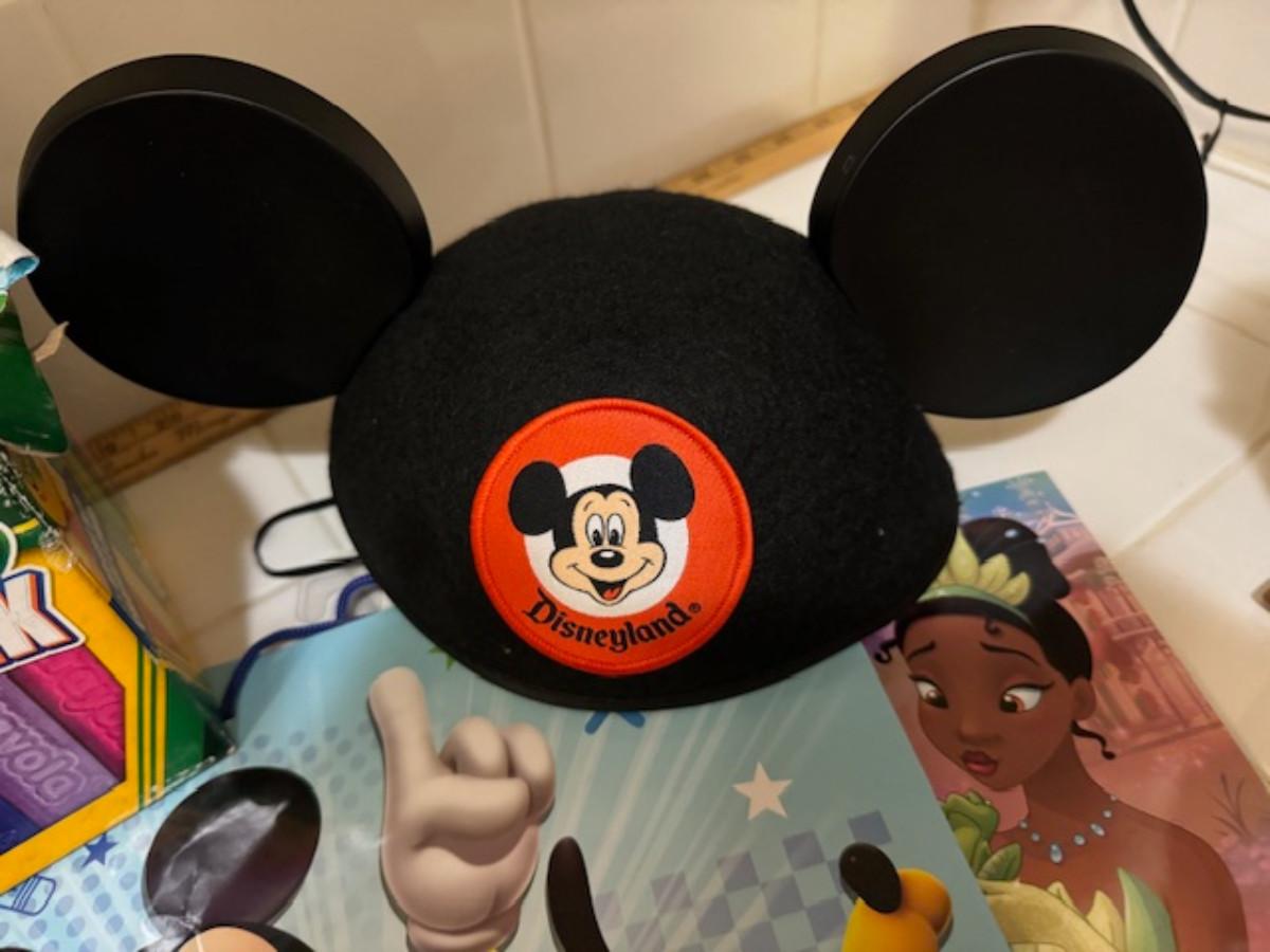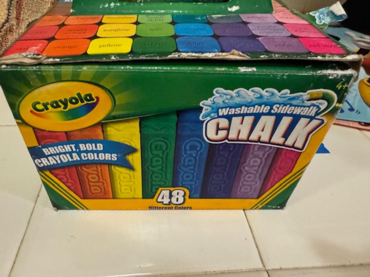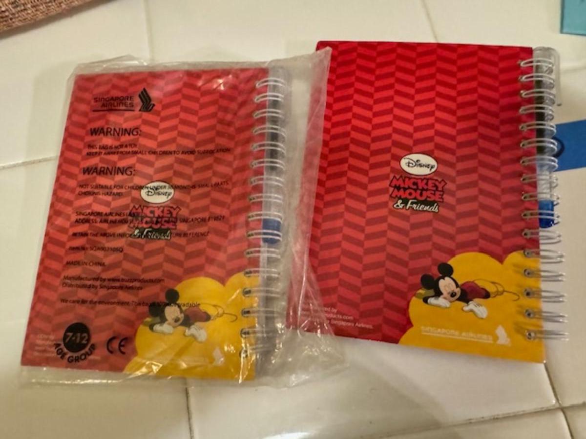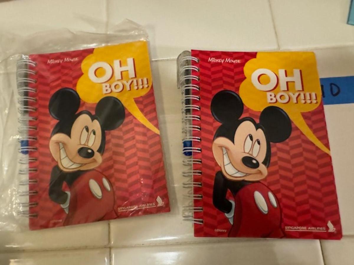 Washable sidewalk chalk - Crayola, twister crayons, Mickey X-mas blanket 52" x 58", Mickey small notebooks x 2, 2 as is Disney gift bags, Disneyland Resort brand new album, Disneyland Mickey hat with name Michael.