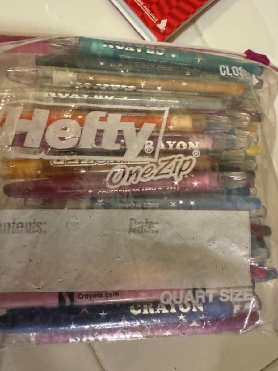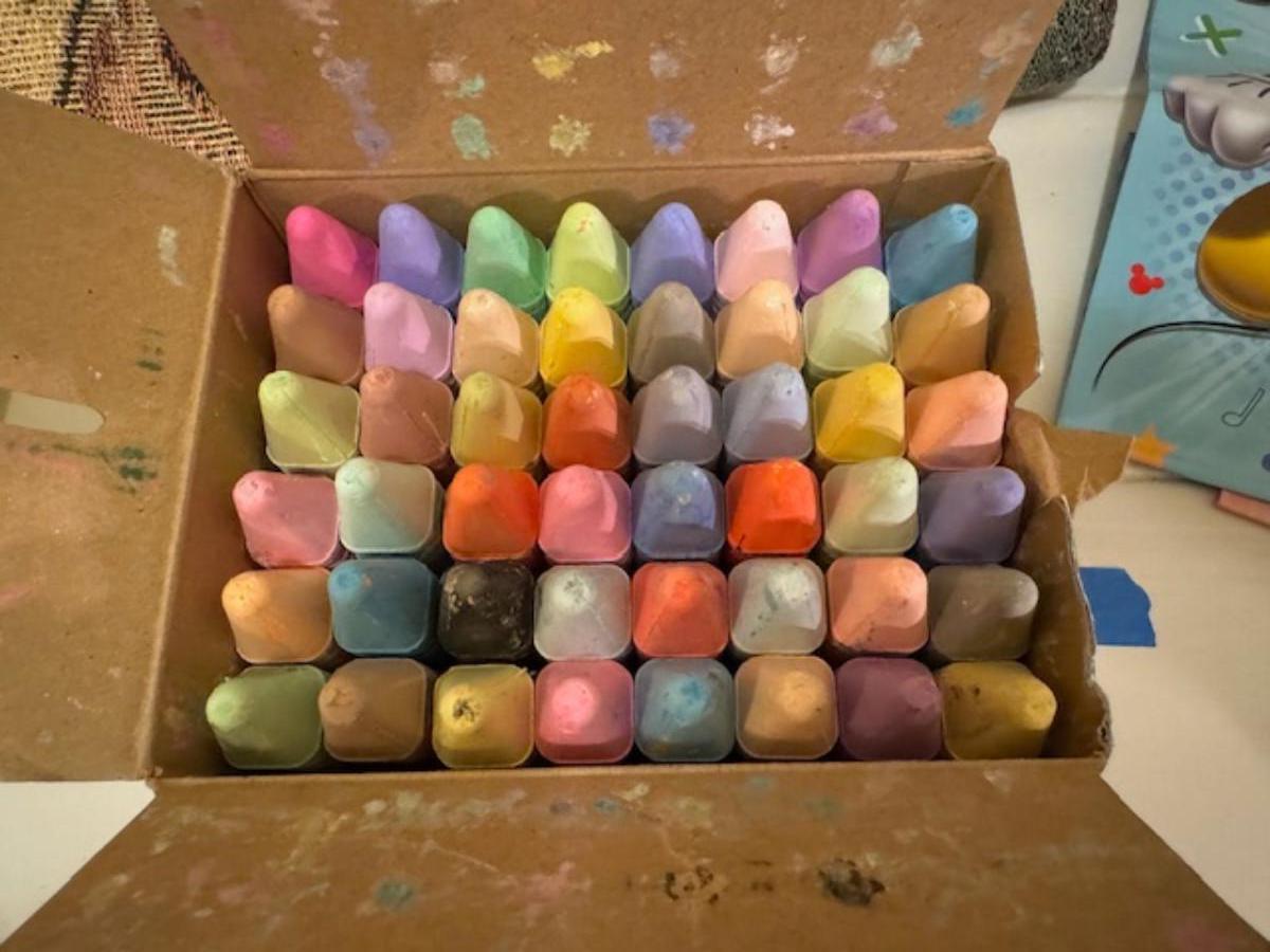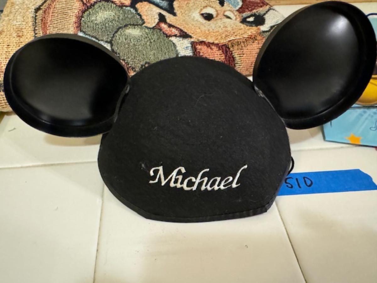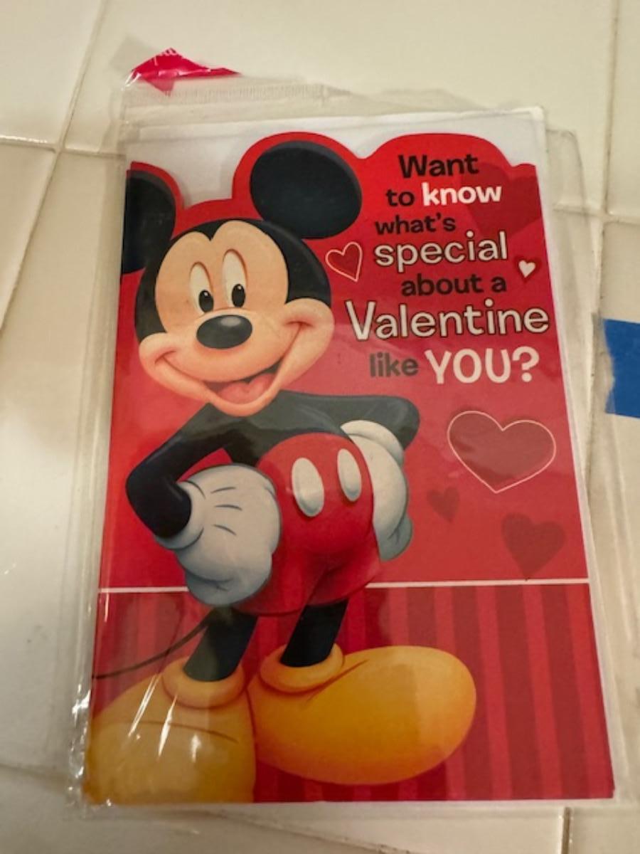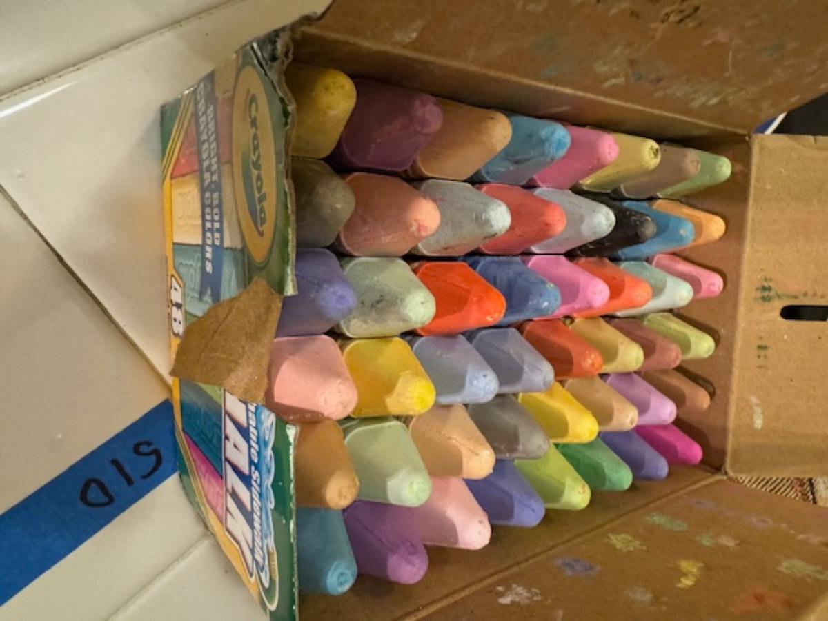 Washable sidewalk chalk - Crayola, twister crayons, Mickey X-mas blanket 52" x 58", Mickey small notebooks x 2, 2 as is Disney gift bags, Disneyland Resort brand new album, Disneyland Mickey hat with name Michael.