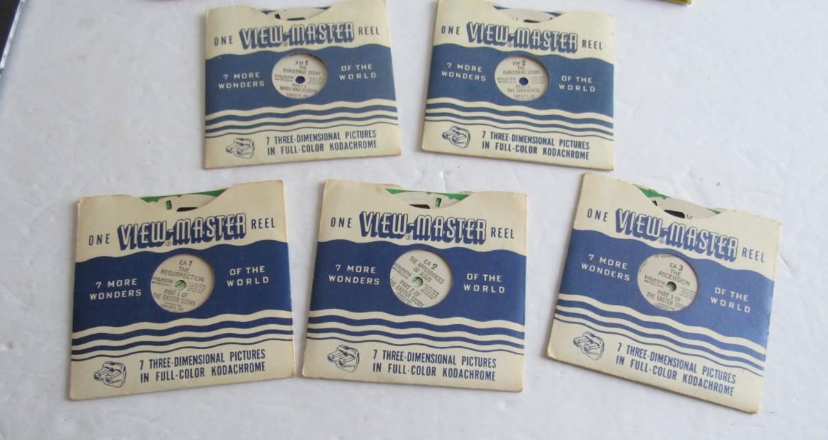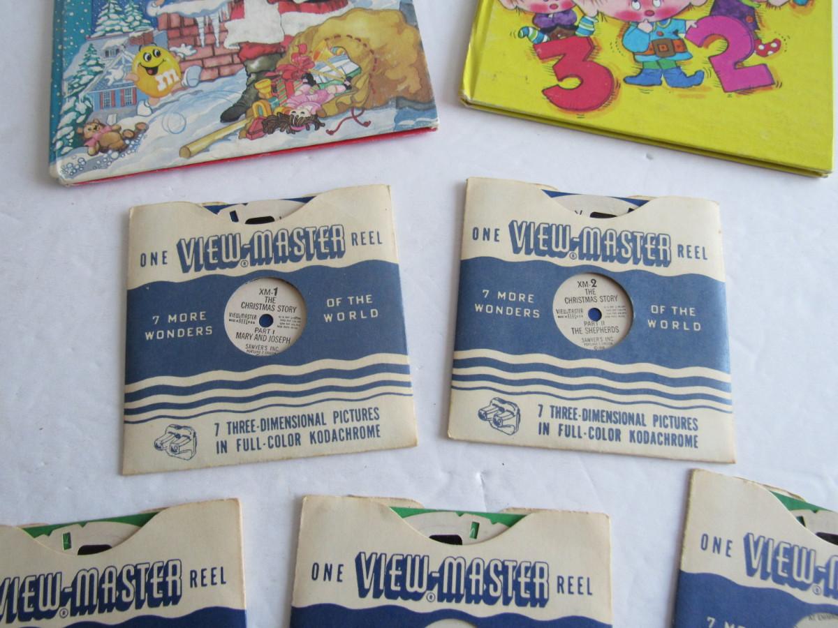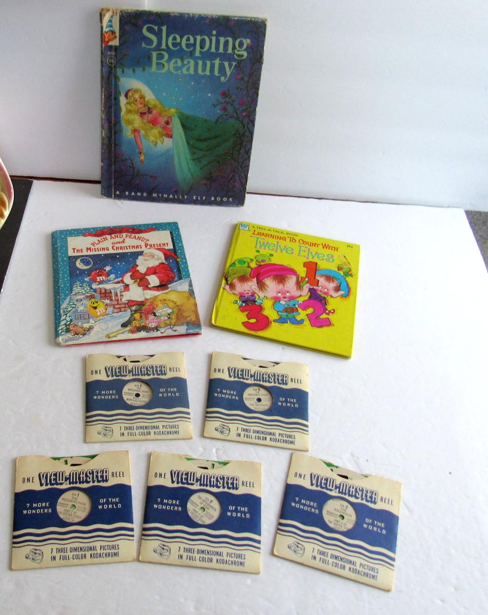 The books are from the 1960-70s and are used but fine. The View Master reels are old ones, one to a set. They include Christmas Story Pt 1 and 2 and Religious ones. Nice shape. Shipping is available at cost plus $5.00 per box for handling and supply fees. See our terms for details. All sales final.