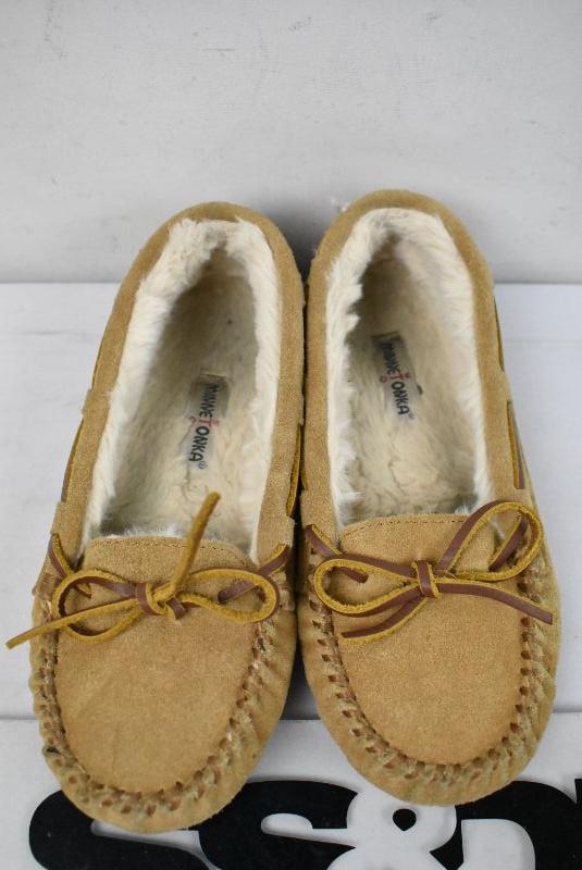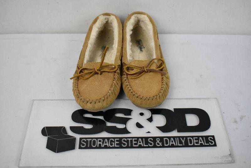 Kids Brown Moccasin Slippers by Minnetonka 7.5