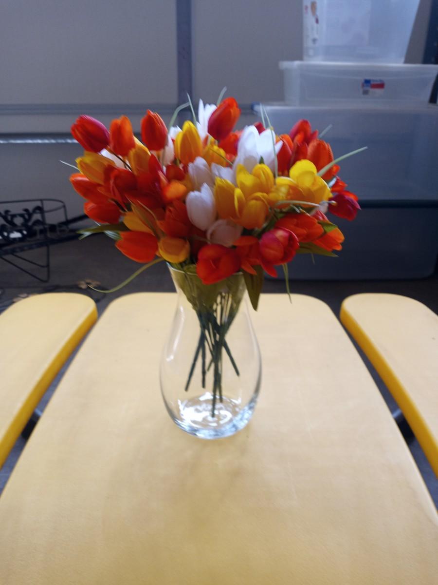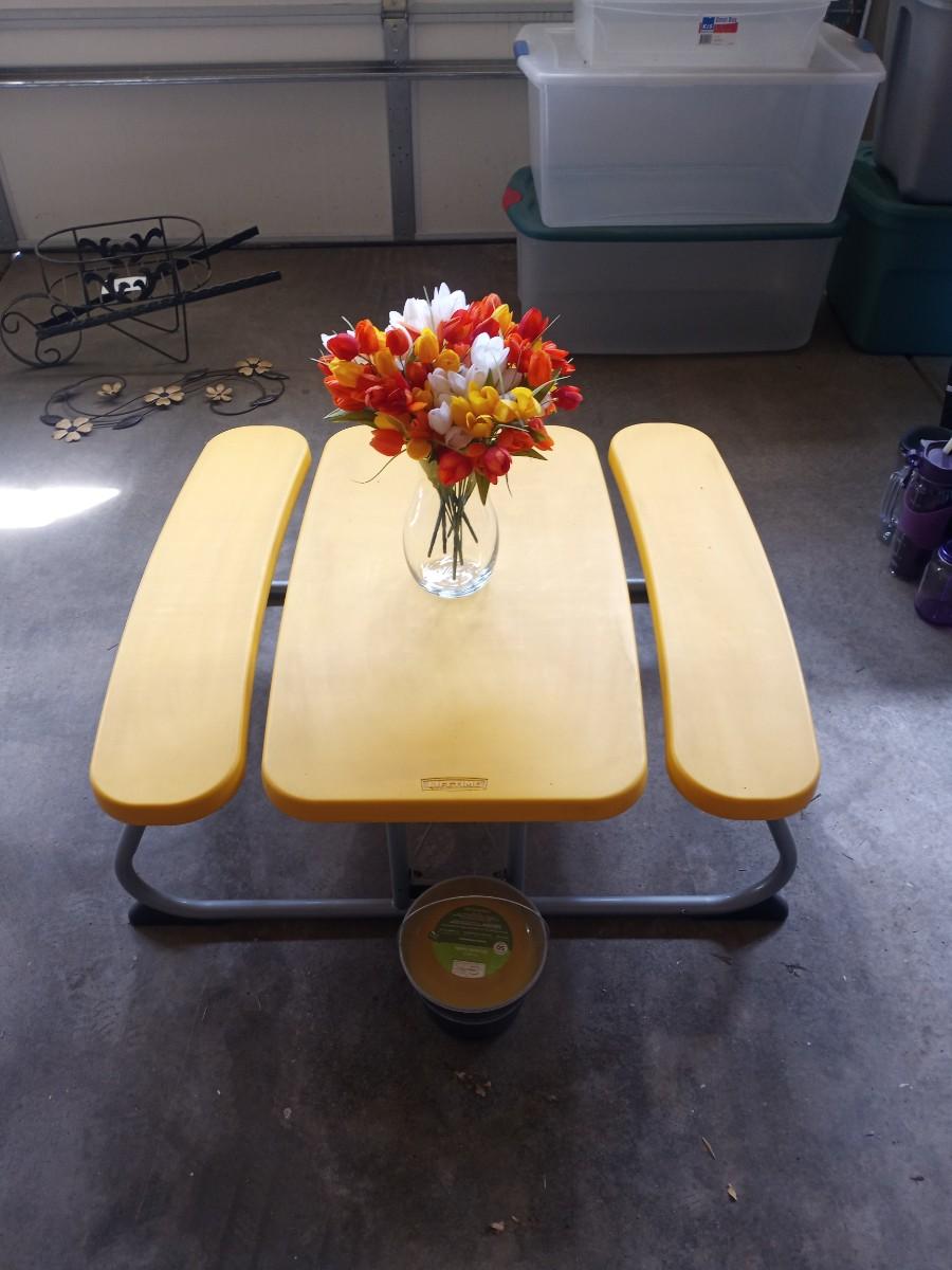 KIDS FOLDING TABLE 35X32 AND CITRONELIA CANDLE VASE WITH FLOWERS