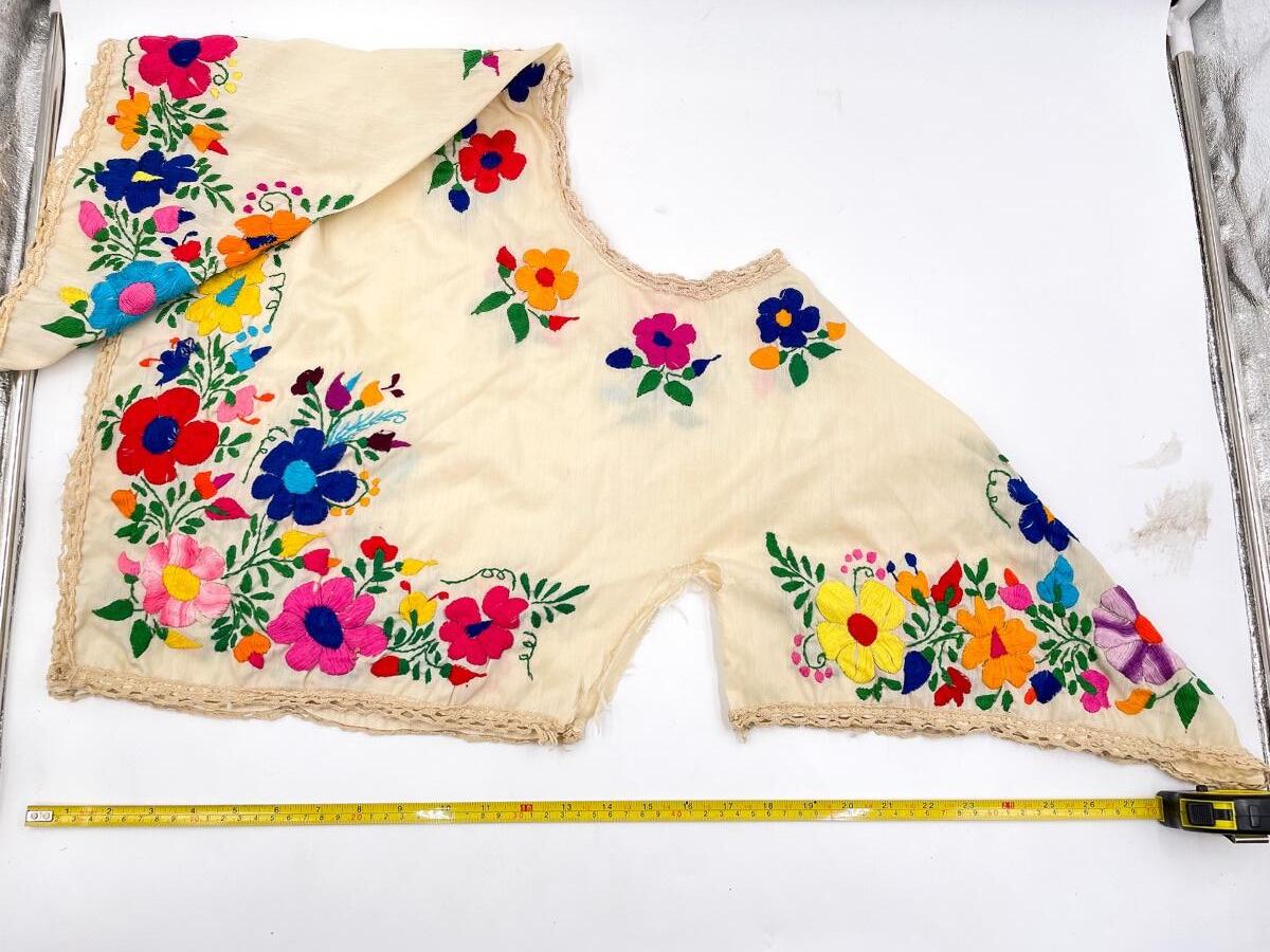 Beautiful piece! Does need some repair work under the arms, as shown - looks like the seam needs resewn. No major stains or rips found. Approx 22.5” from shoulder to hem point.