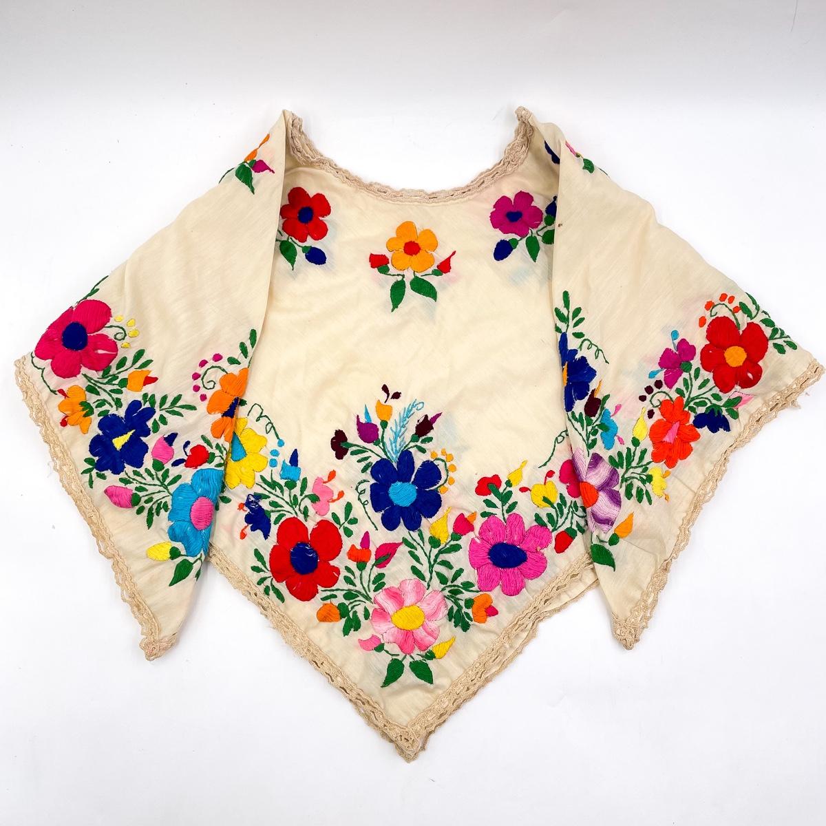KIDS FLORAL EMBROIDERED PONCHO-STYLE TOP