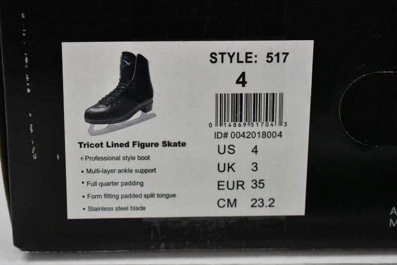 Kids Ice Skates, Black, Size 4, by American Athletic Tricot-Lined - New