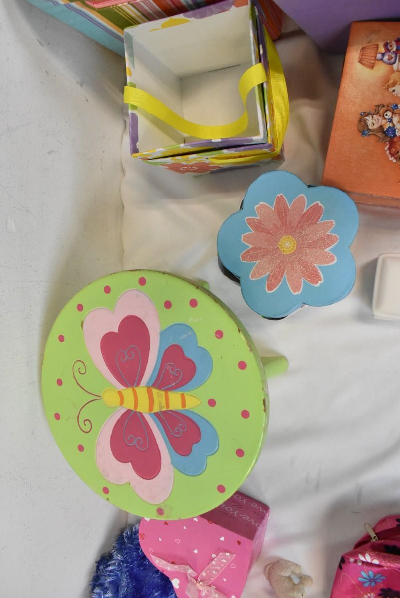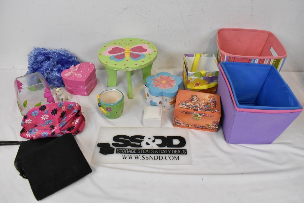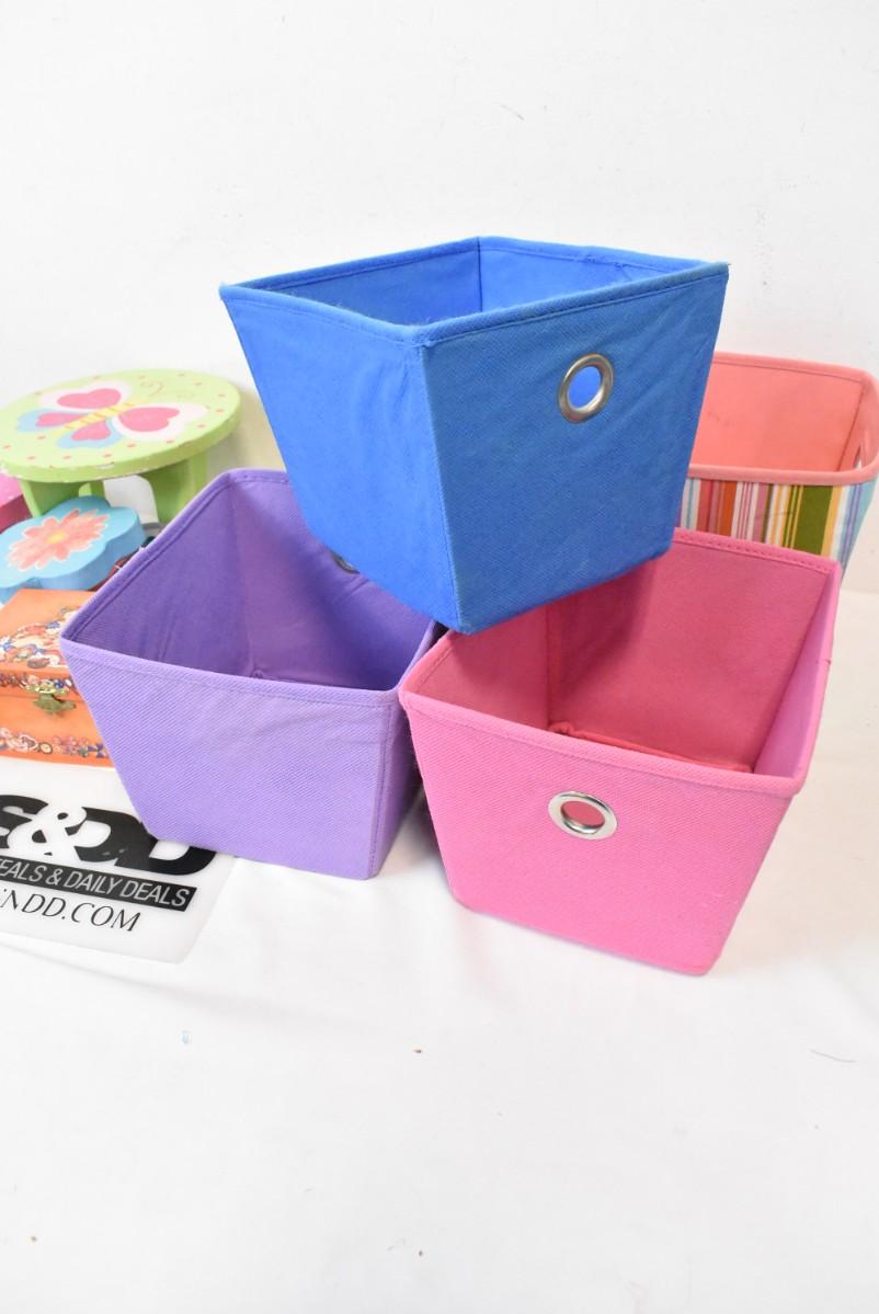 Kids Organization Lot: Small Baskets, Butterfly Stool, Gift Boxes