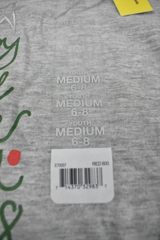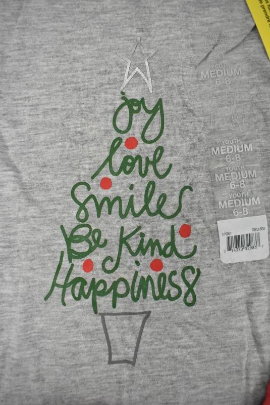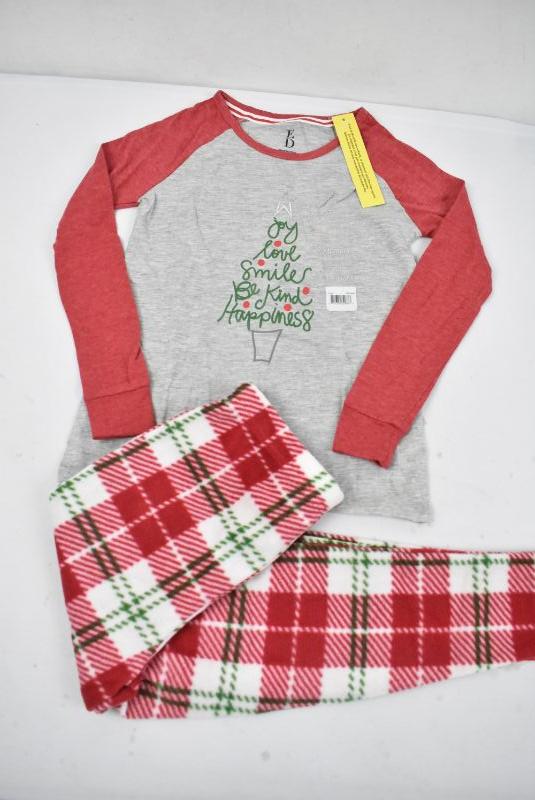 Kids Pajama Set: Red & Gray Christmas Tree & Plaid, Size Medium 6-8 - New