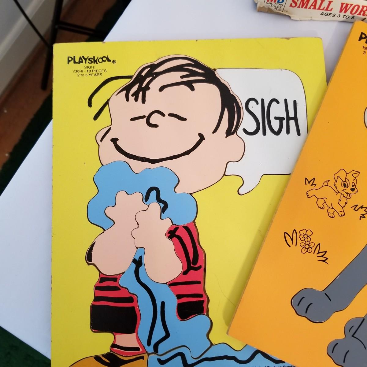 Ten different puzzles for kids to enjoy. Mickey Mouse, Bugs Bunny, Peanuts and more. Four regular jigsaw style items, five wooden puzzles, and one twelve piece floor puzzle. All items gently used. Shipping available.