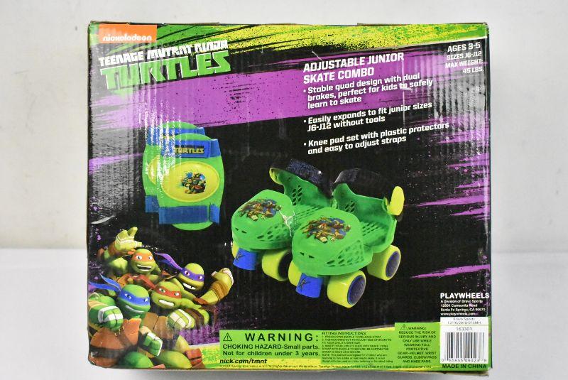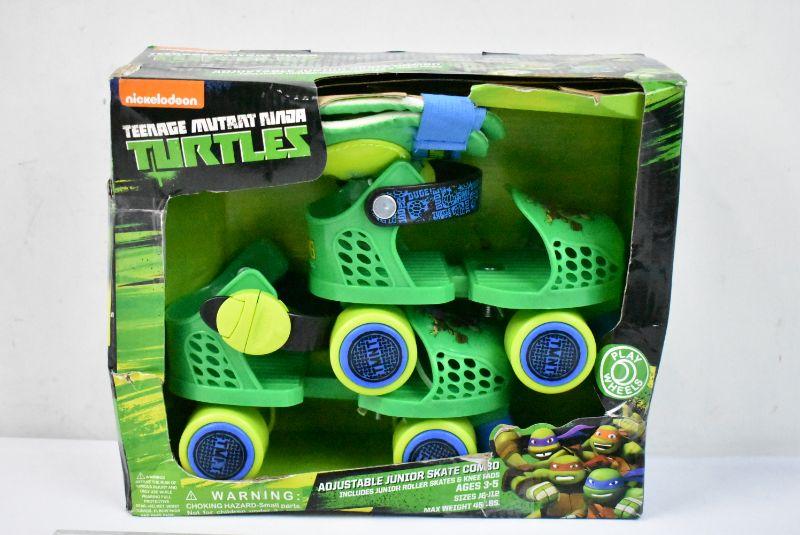 Kids Roller Skates: PlayWheels Teenage Mutant Ninja Turtles with Knee Pads, Junior Size 6-12 - New Product, Damaged Box