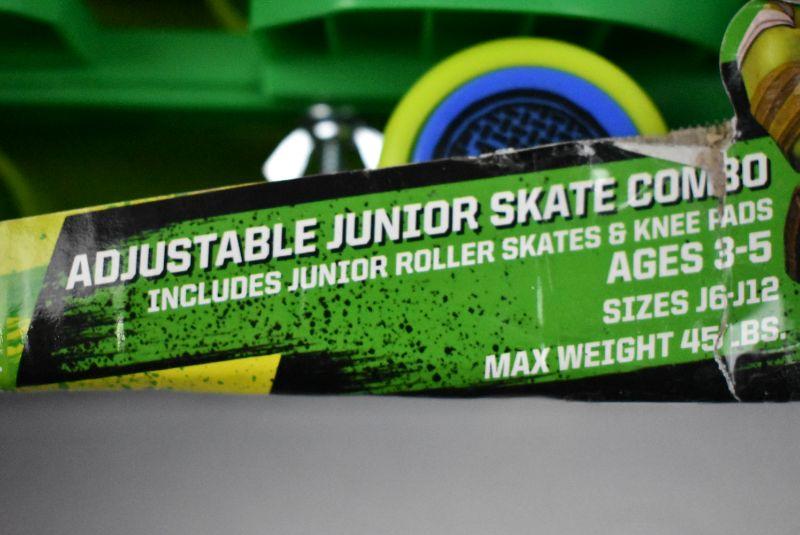 Kids Roller Skates: TMNT w/ Knee Pads, Junior Size 6-12 - New, Damaged Box