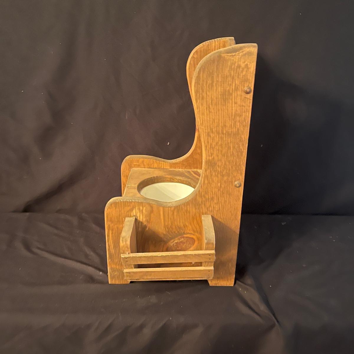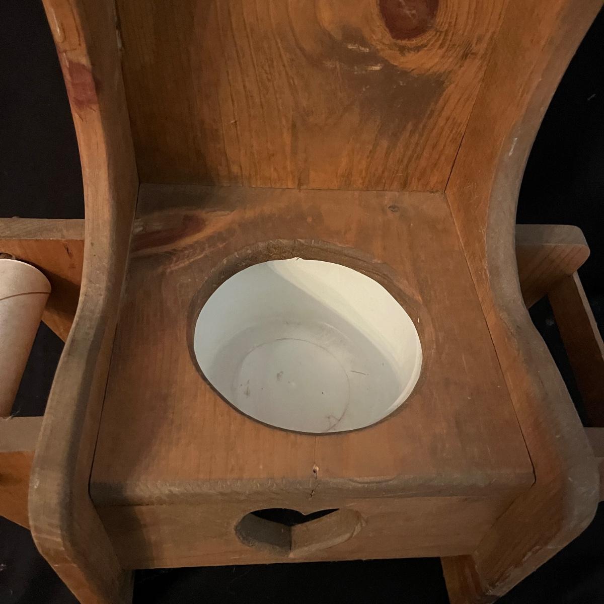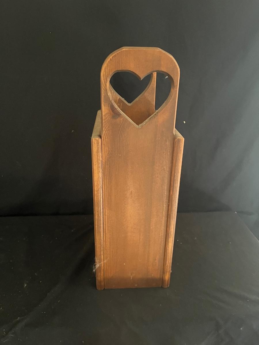 Lot includes a wooden kid’s rustic potty with removable plastic pan, toilet roll holder and magazine rack. Piece measures 17” x 11” x 20.5”H. Also includes wooden box with heart shaped cutouts.
