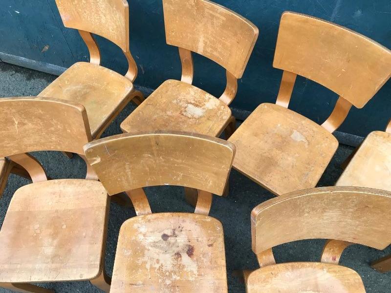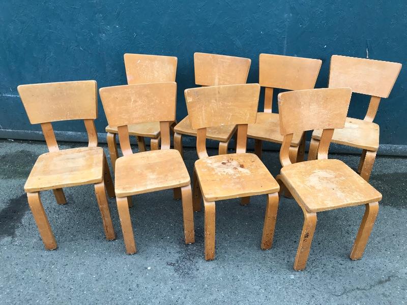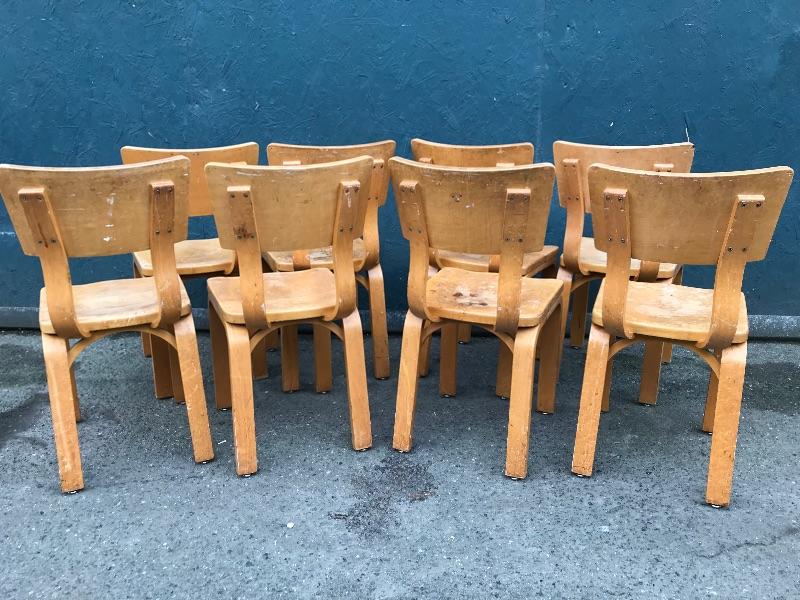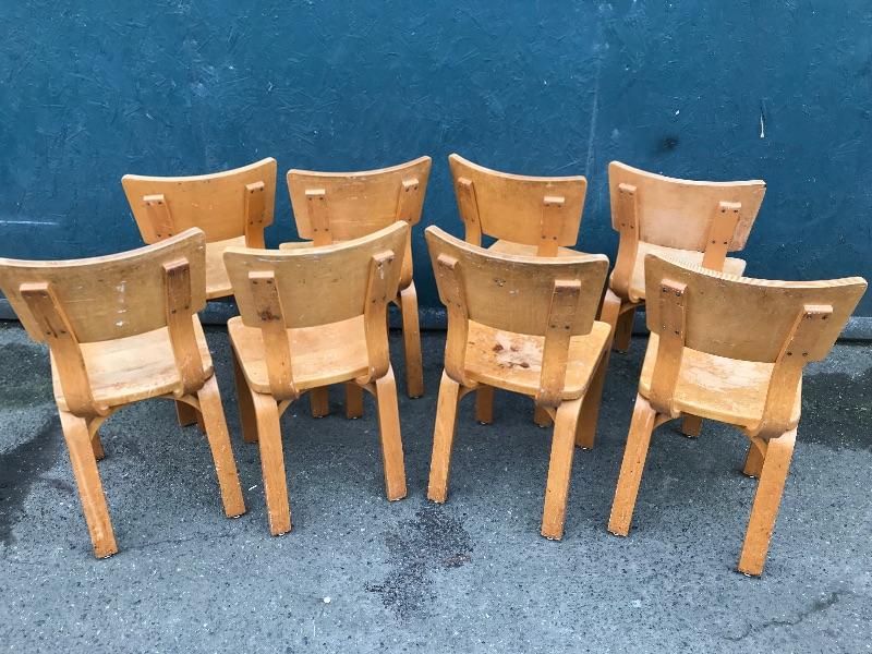 Set of 8, dimensions are 14”L x 16”W x 16.5”H seat, 30.75”H back
